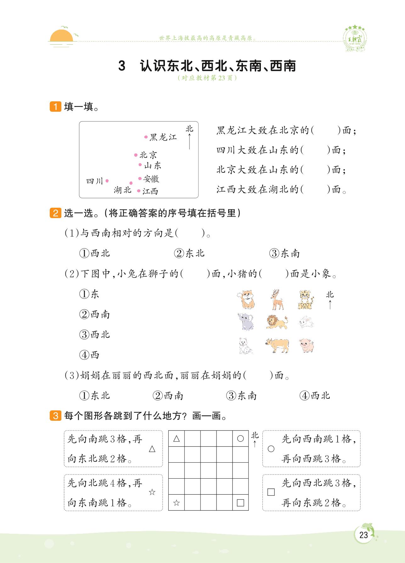 2022下册二年级数学苏教版 第三单元——3 认识东北、西北、东南、西南