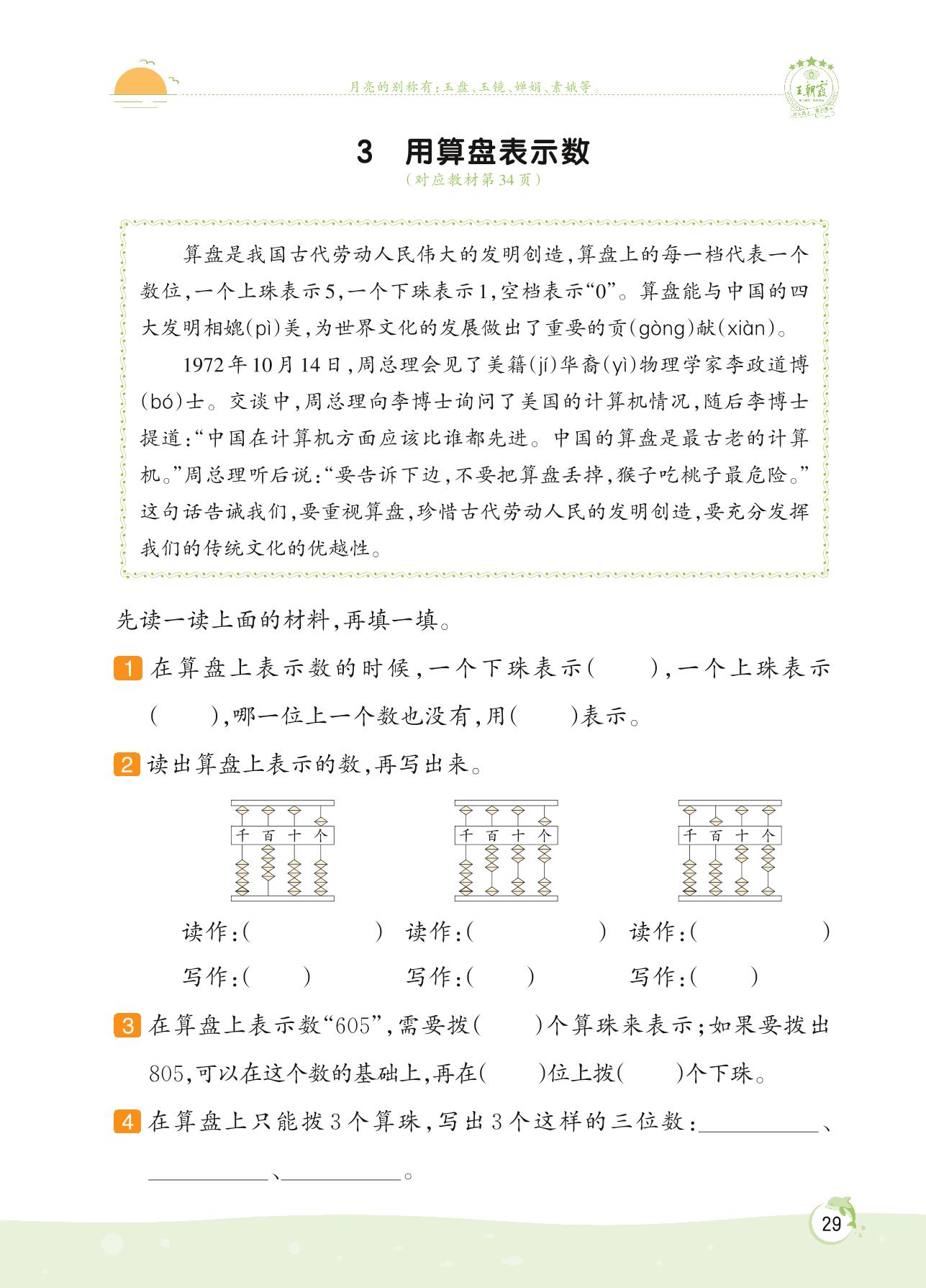 2022下册二年级数学苏教版 第四单元——3 用算盘表示数