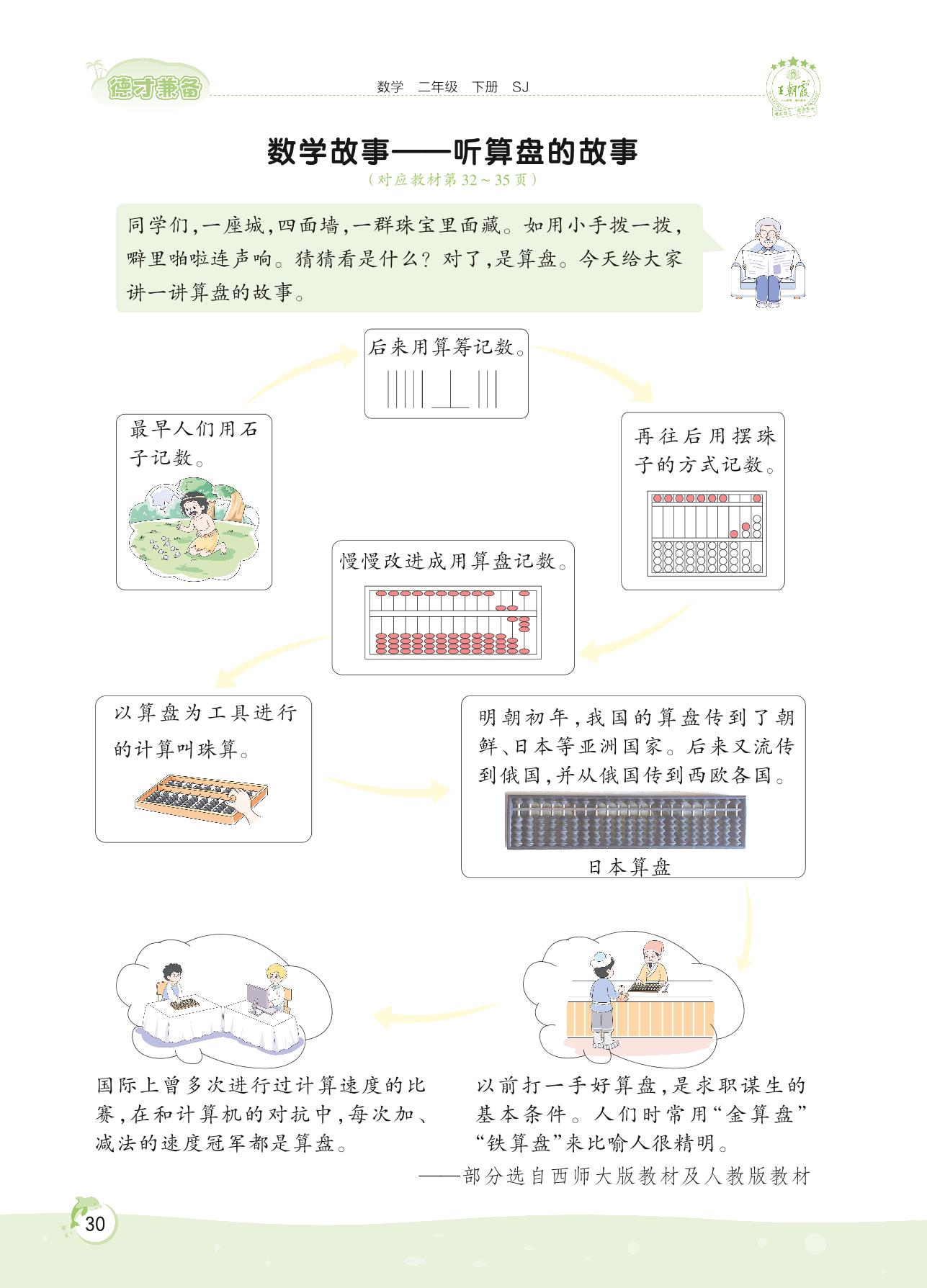 2022下册二年级数学苏教版 第四单元——数学故事 听算盘的故事