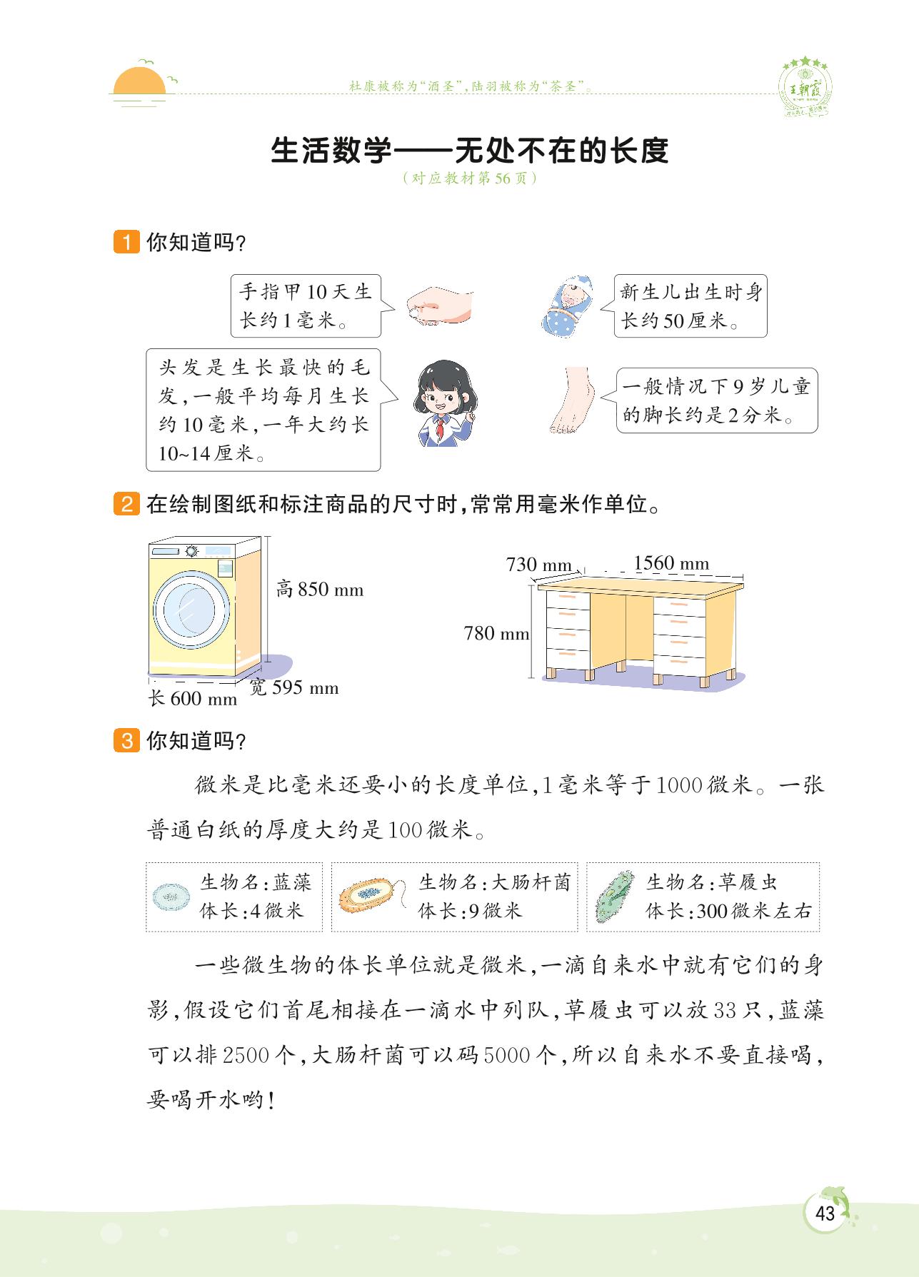 2022下册二年级数学苏教版 第五单元——生活数学 无处不在的长度
