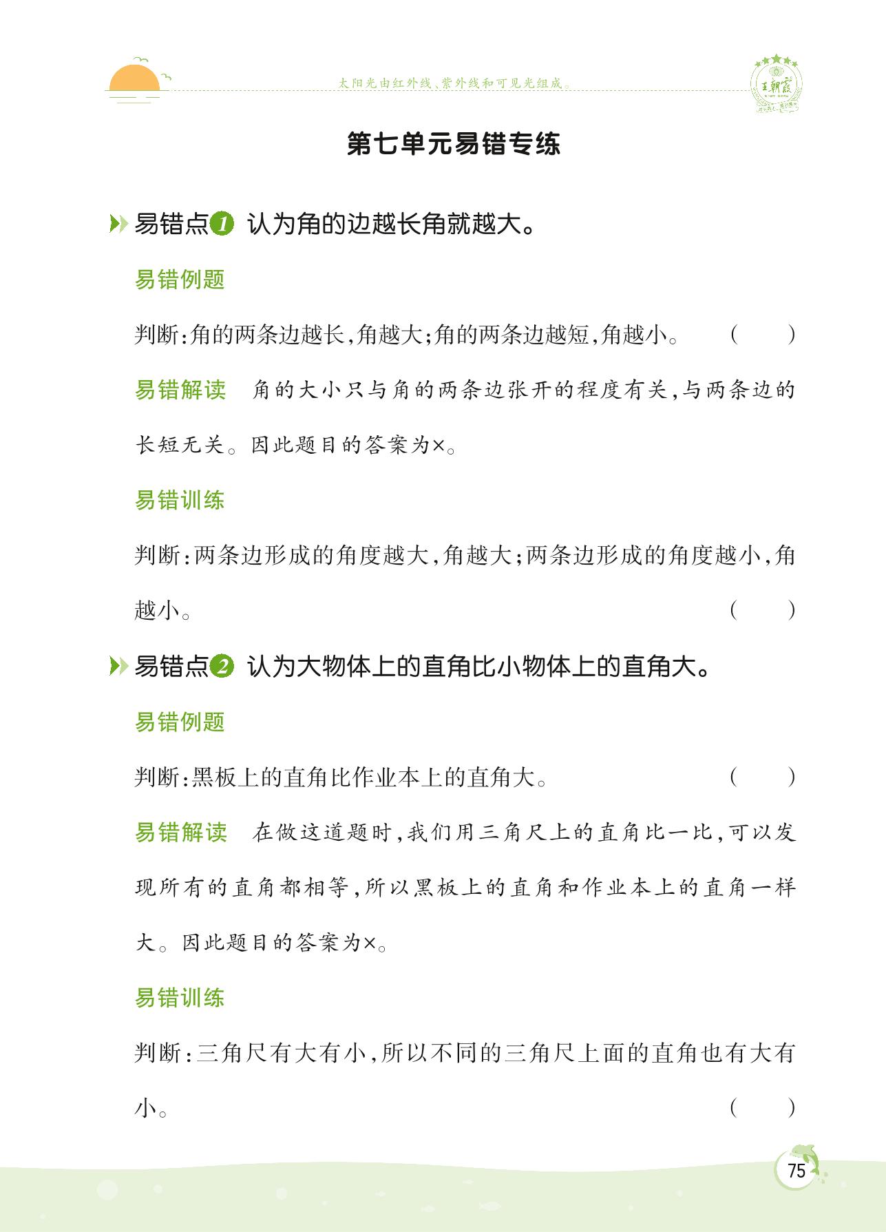 2022下册二年级数学苏教版 第七单元易错专练