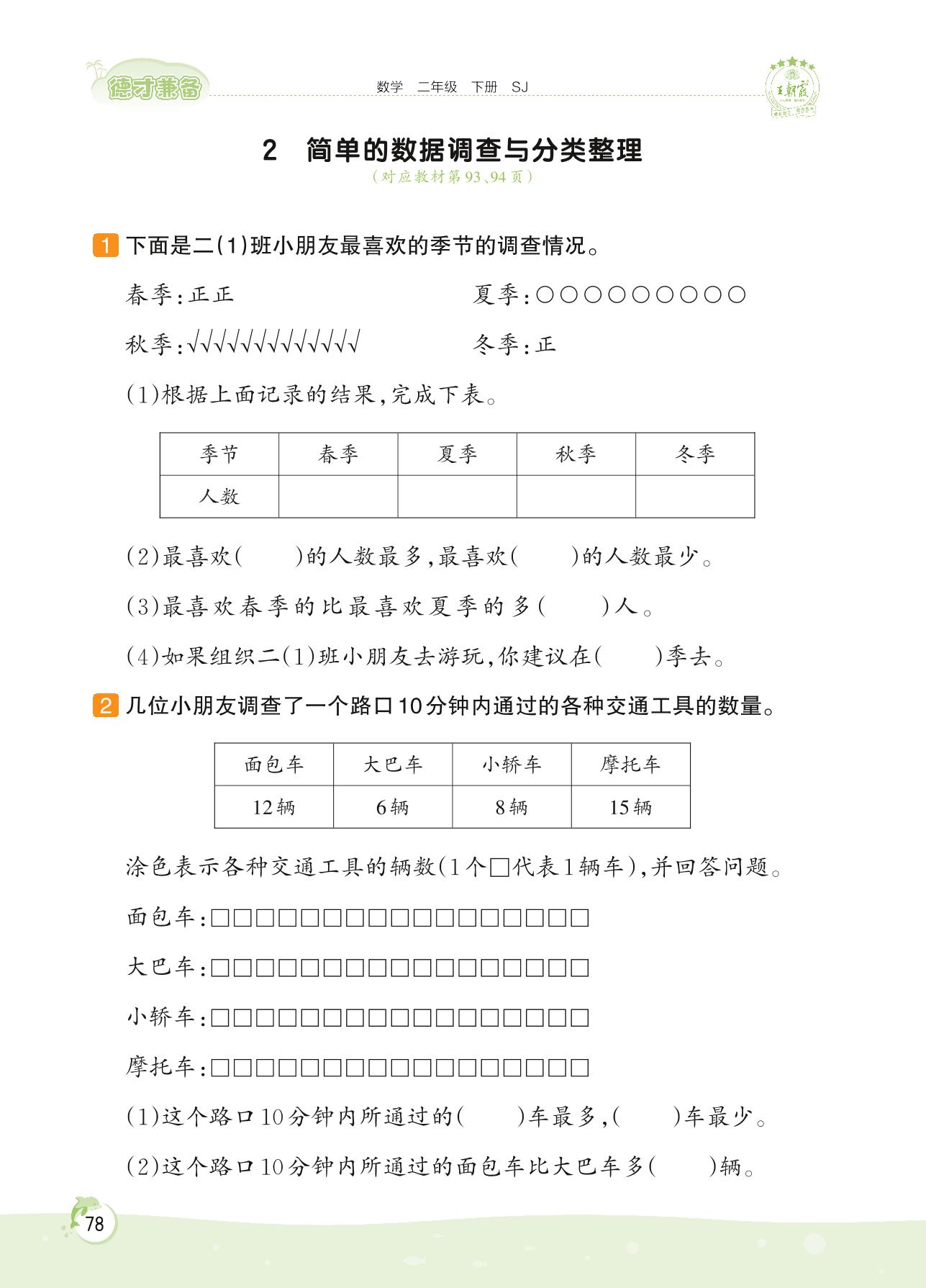 2022下册二年级数学苏教版 第八单元——2 简单的数据调查与分类整理
