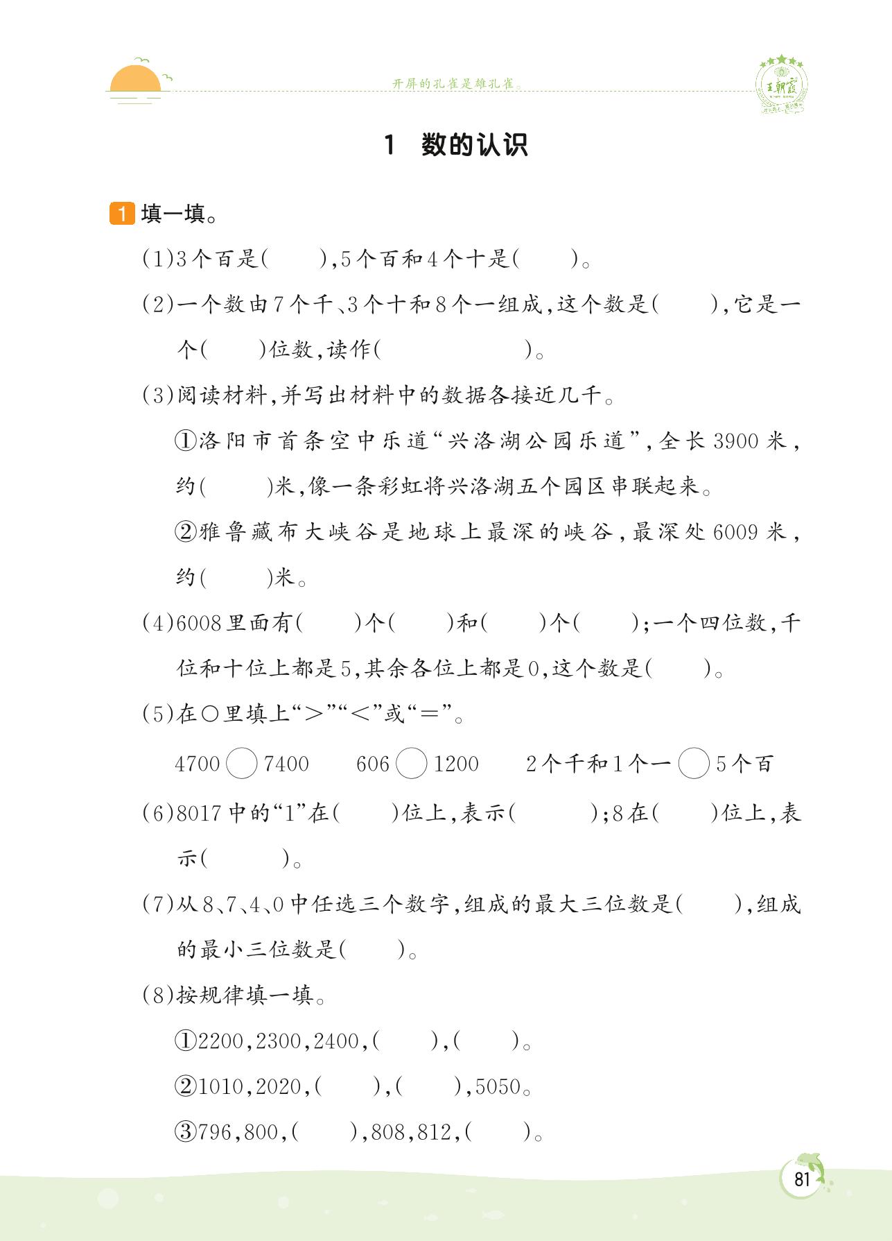 2022下册二年级数学苏教版 第九单元——1 数的认识