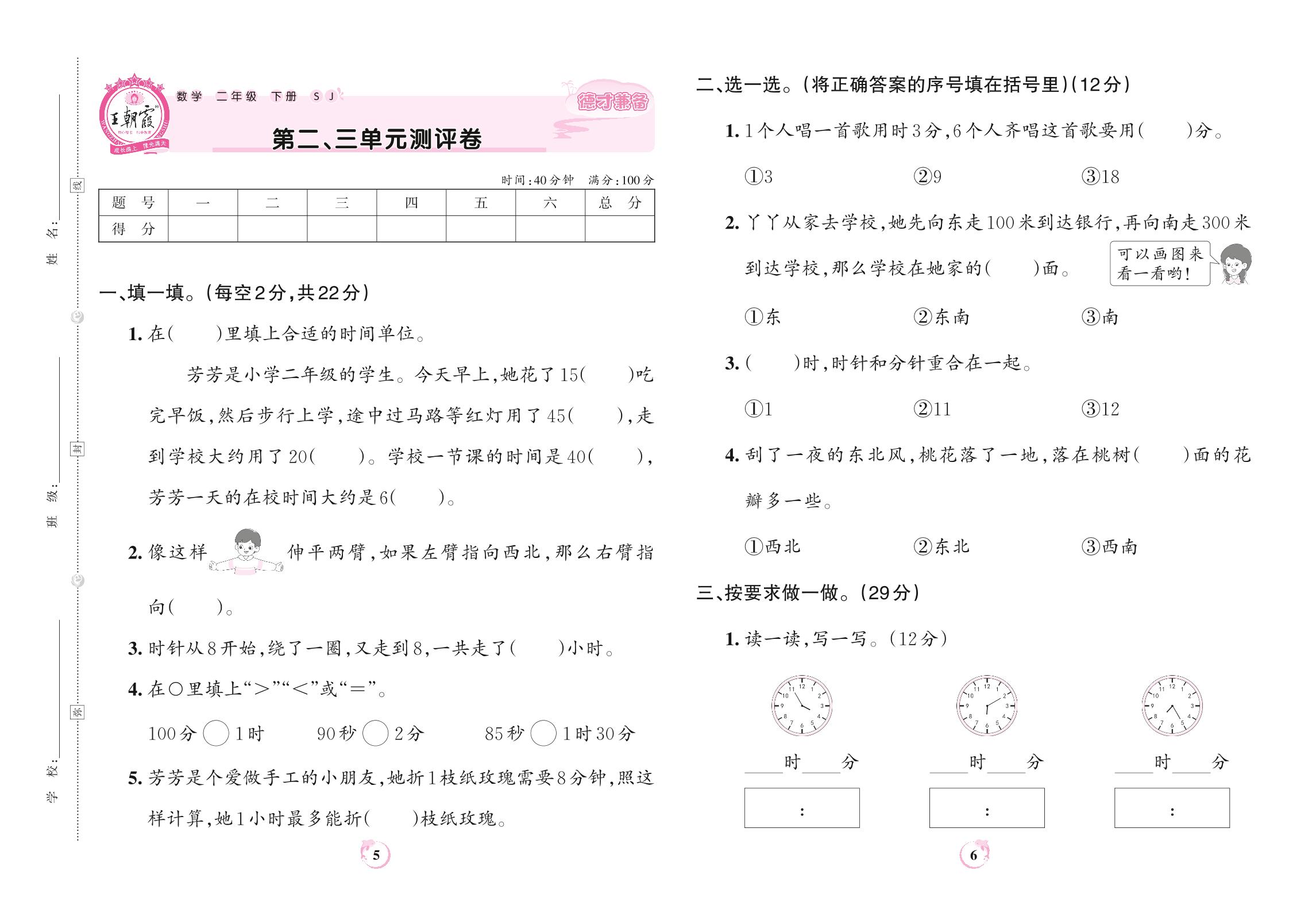 2022下册二年级数学苏教版 第二、三单元测评卷