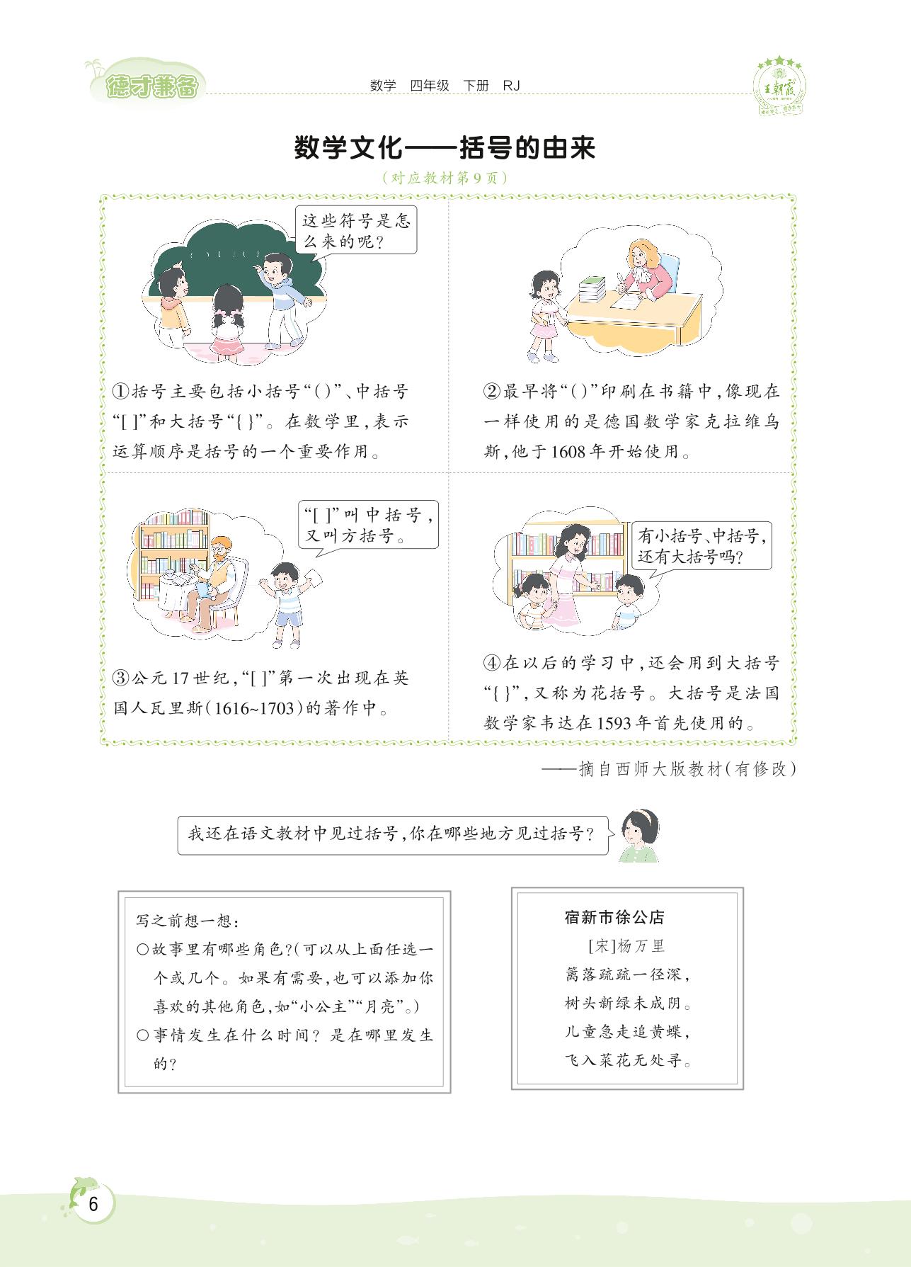 2022下册四年级数学人教版 第一单元——数学文化 括号的由来