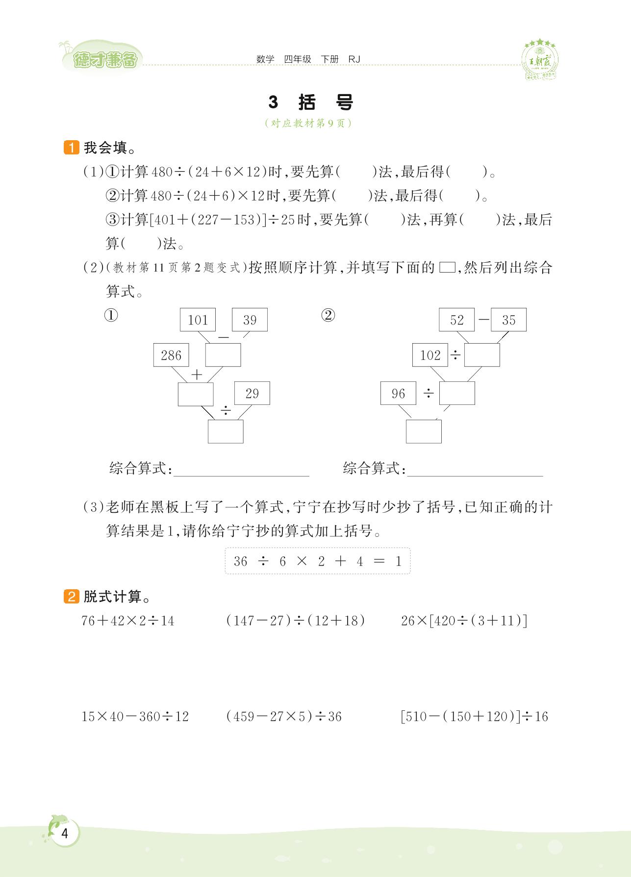 2022下册四年级数学人教版 第一单元——3 括号