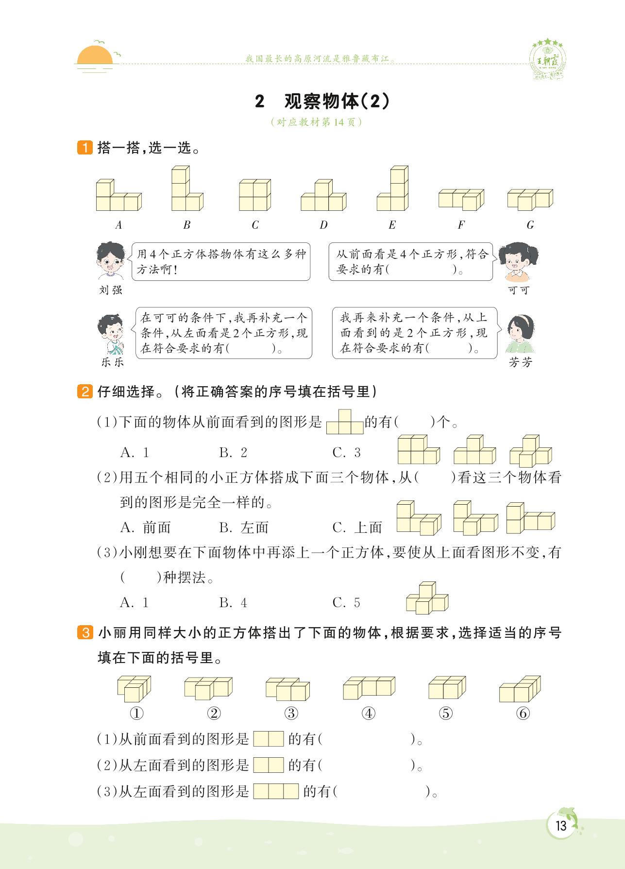 2022下册四年级数学人教版 第二单元——2 观察物体(2)