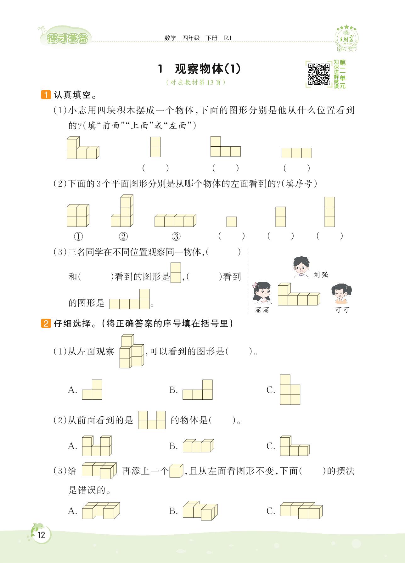 2022下册四年级数学人教版 第二单元——1 观察物体(1)