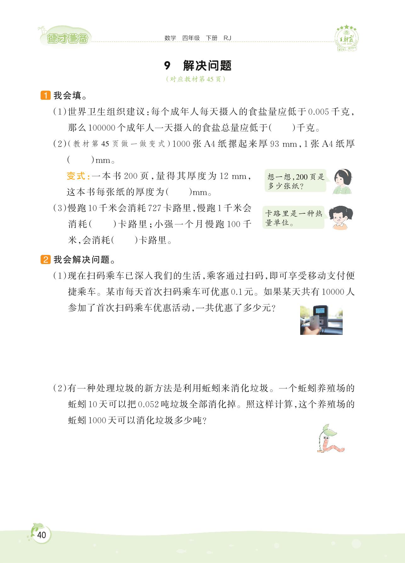 2022下册四年级数学人教版 第四单元——9 解决问题