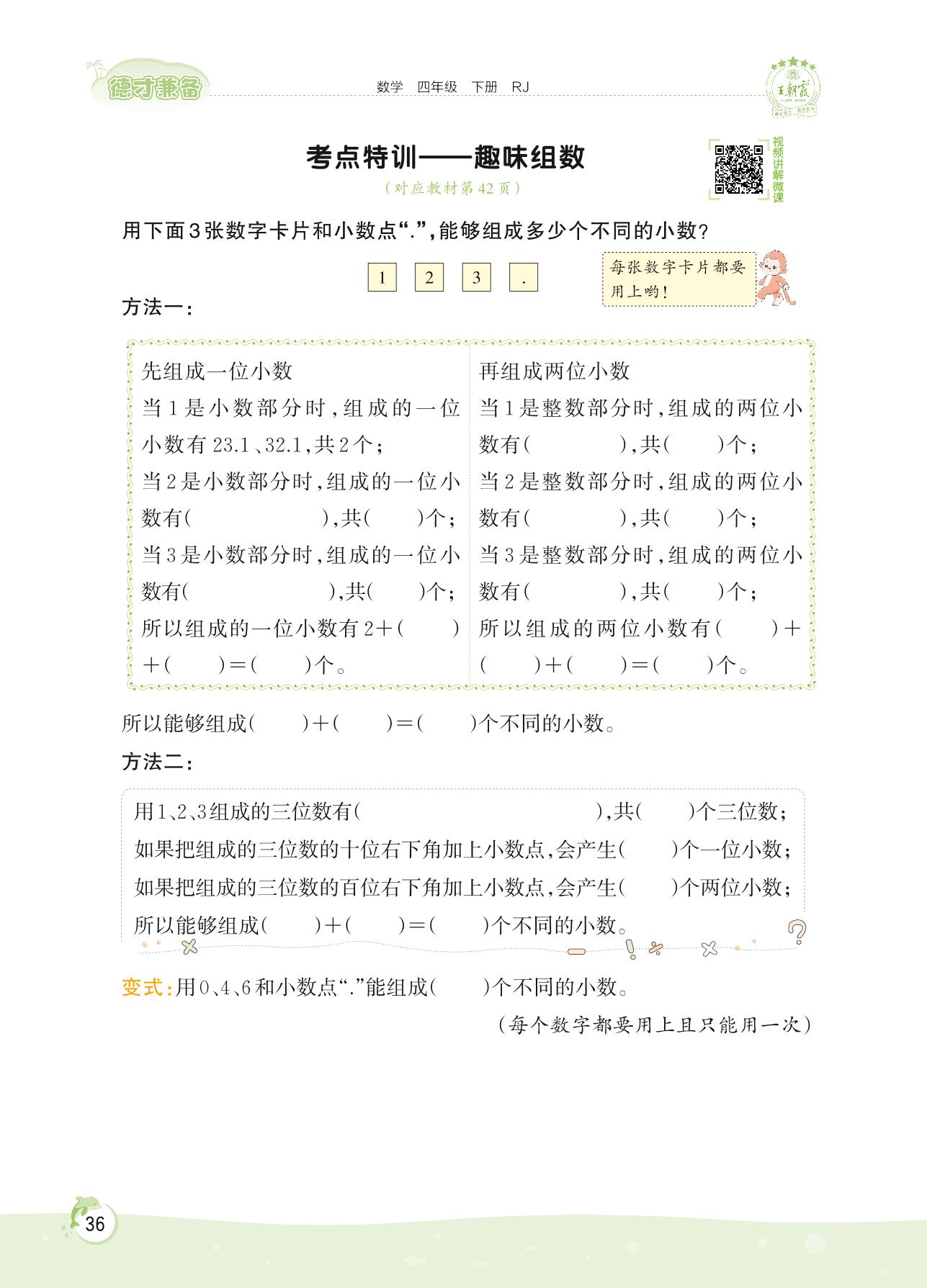 2022下册四年级数学人教版 第四单元——考点特训 趣味组数