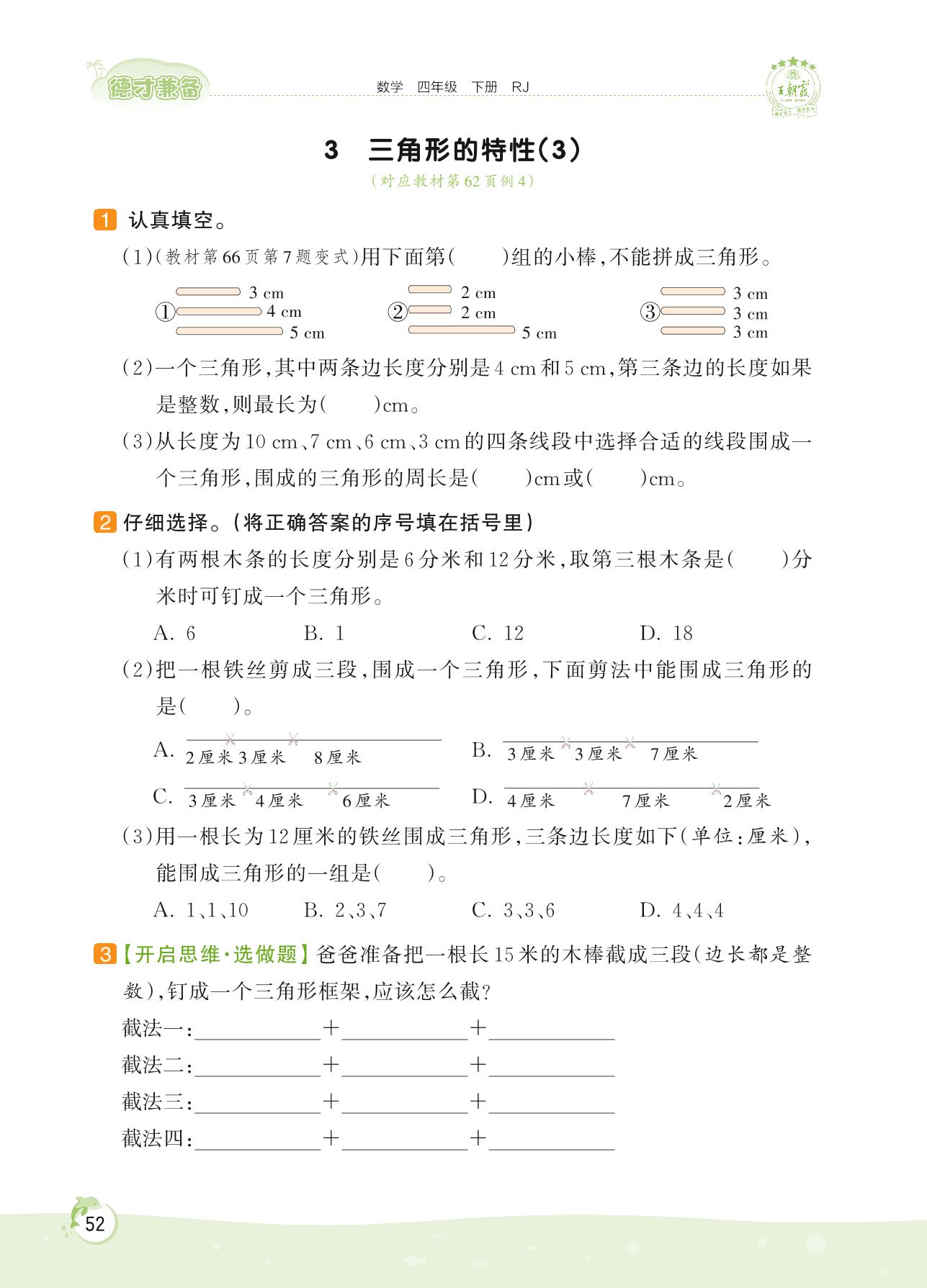 2022下册四年级数学人教版 第五单元——3 三角形的特性(3)