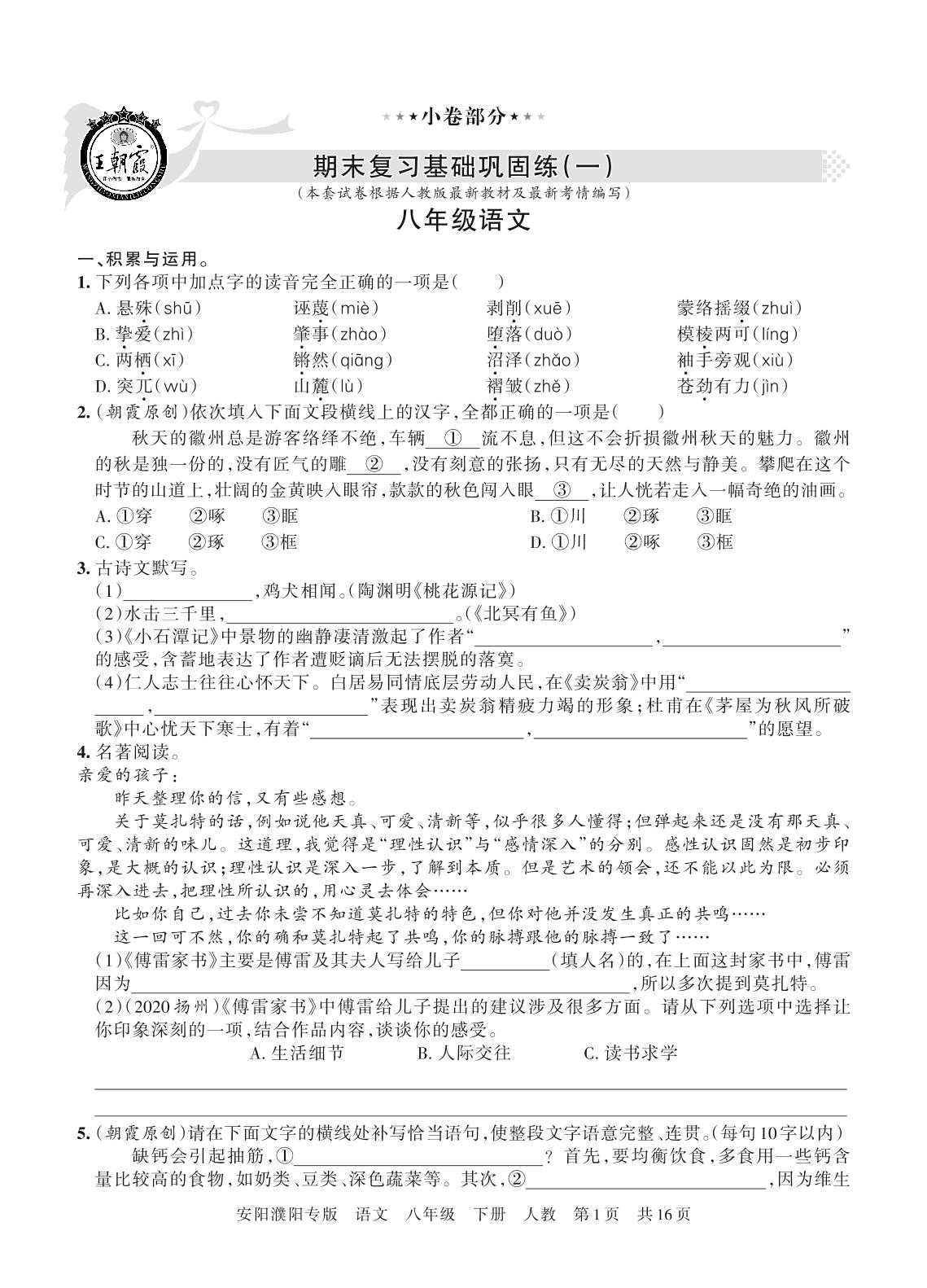 王朝霞期末复习基础巩固练八年级下册语文(人教版)_R210801233805【0】