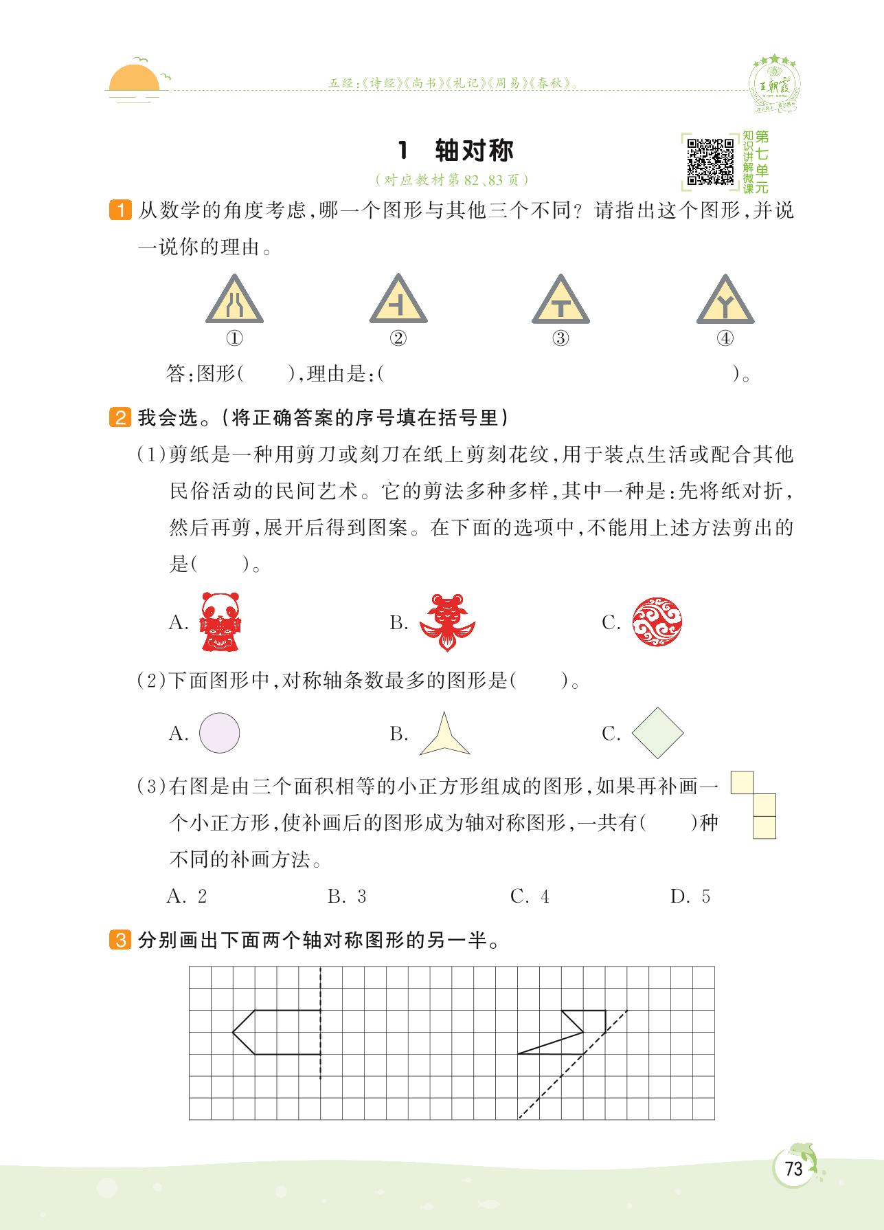 2022下册四年级数学人教版 第七单元——1 轴对称