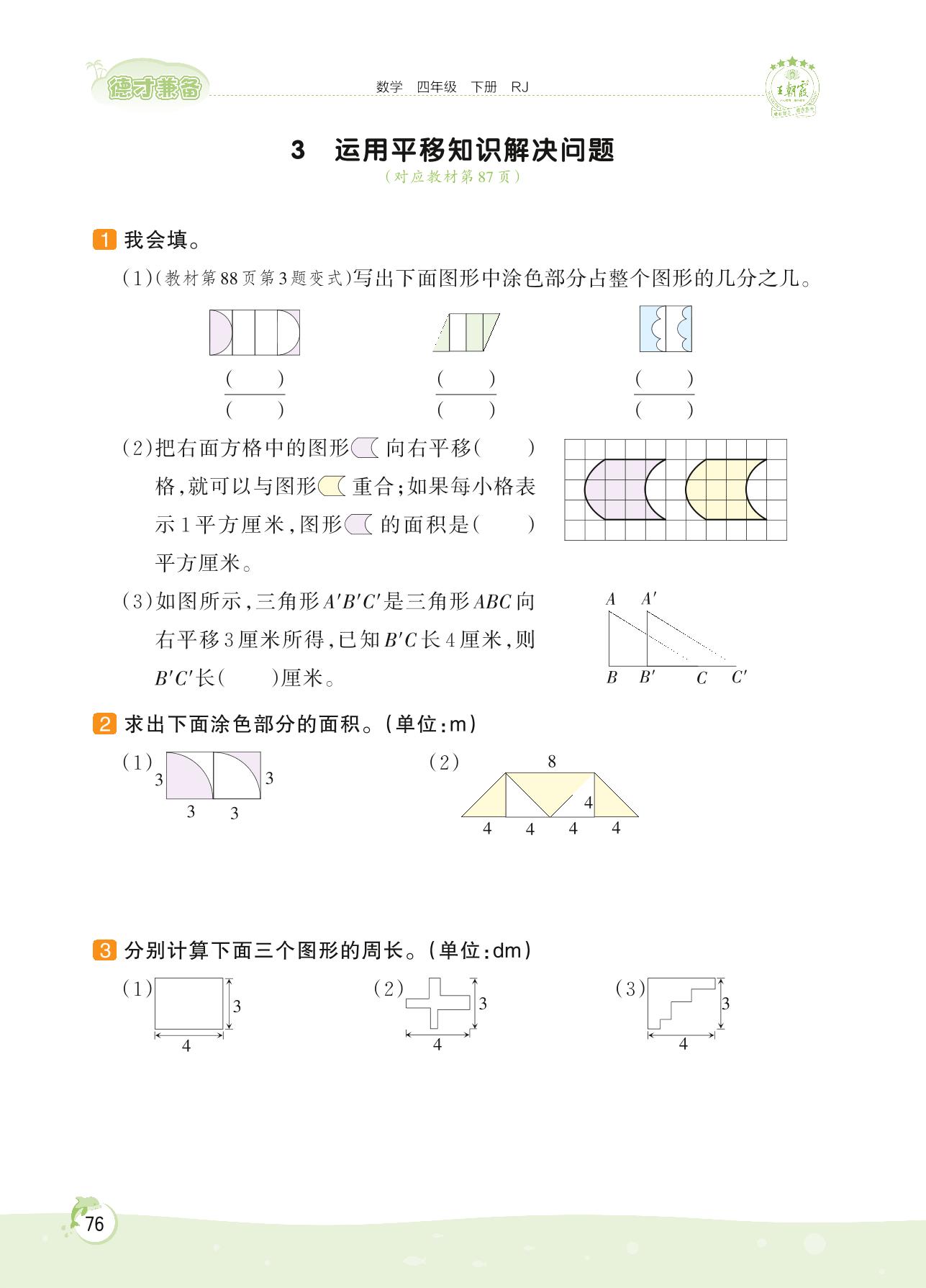 2022下册四年级数学人教版 第七单元——3 运用平移知识解决问题