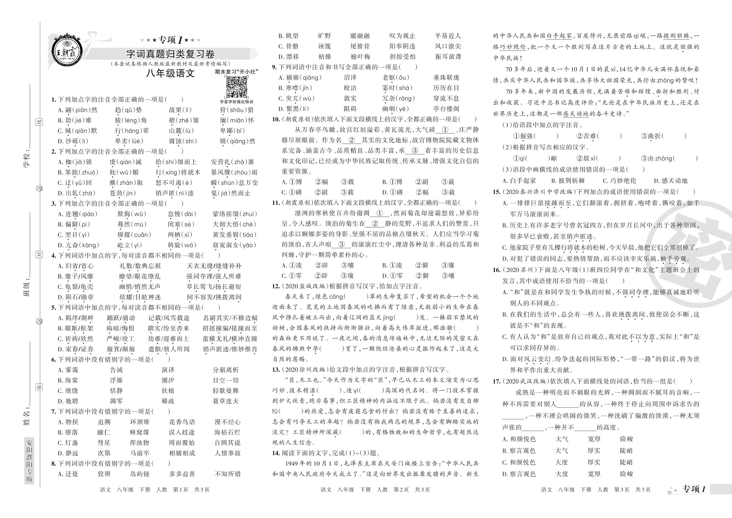 王朝霞期末专项卷——字词、句子真题归类复习八年级下册语文(人教版)_R210801233830【0】