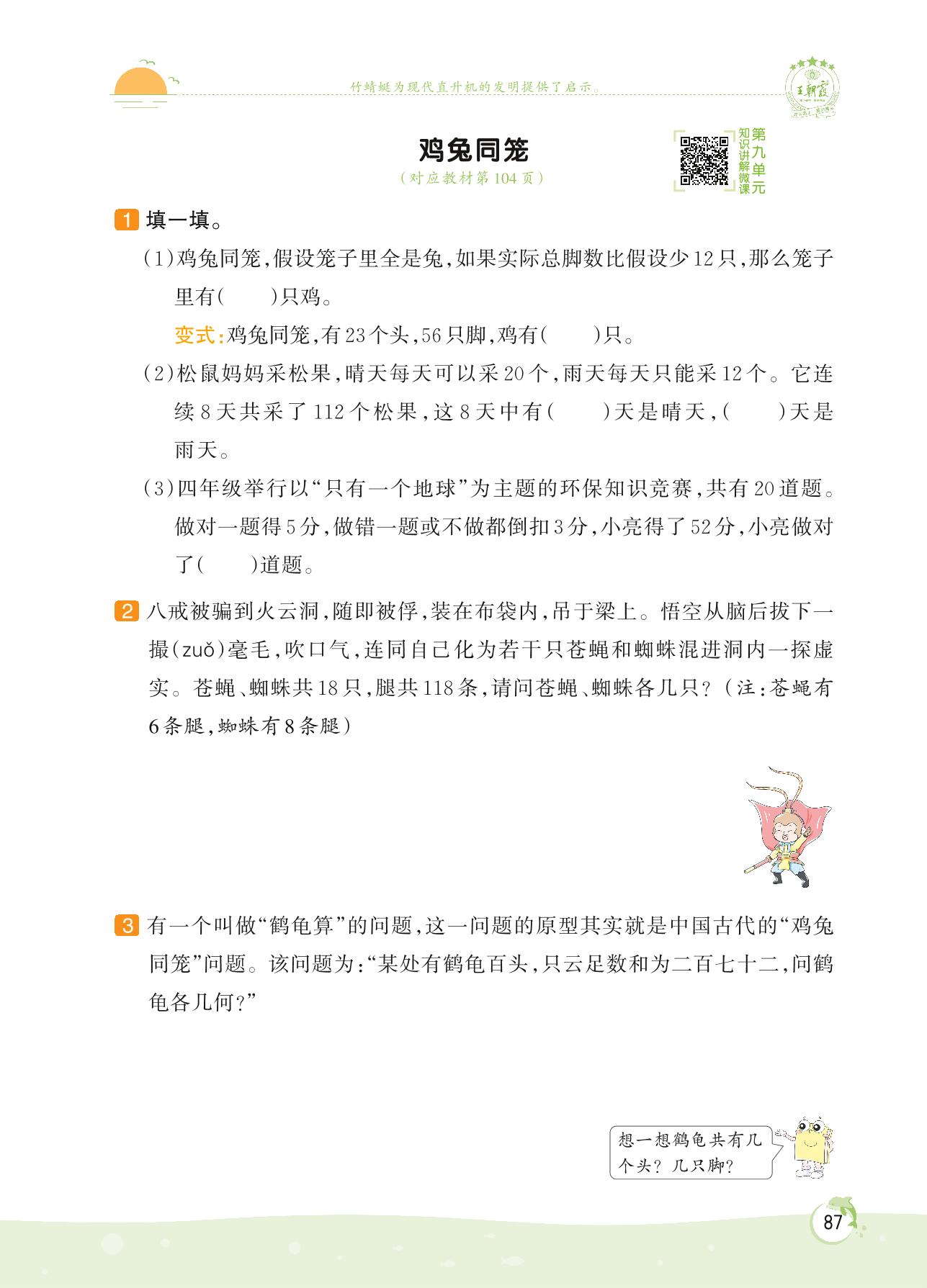 2022下册四年级数学人教版 第九单元——鸡兔同笼