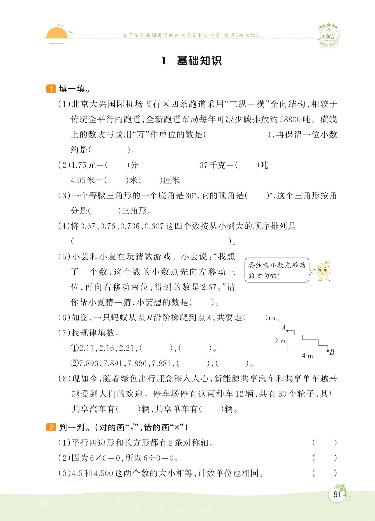 2022下册四年级数学人教版 第十单元——1 基础知识