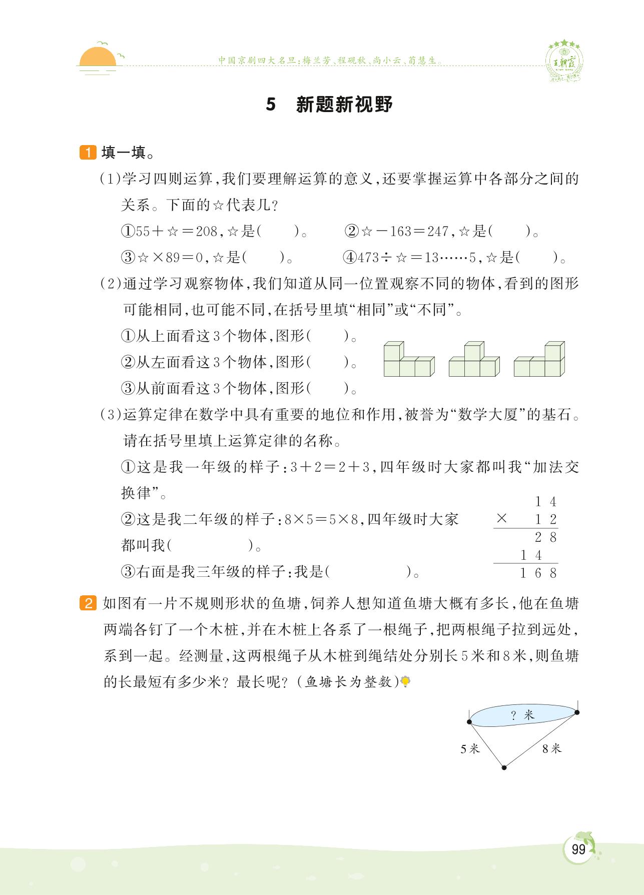 2022下册四年级数学人教版 第十单元——5 新题新视野
