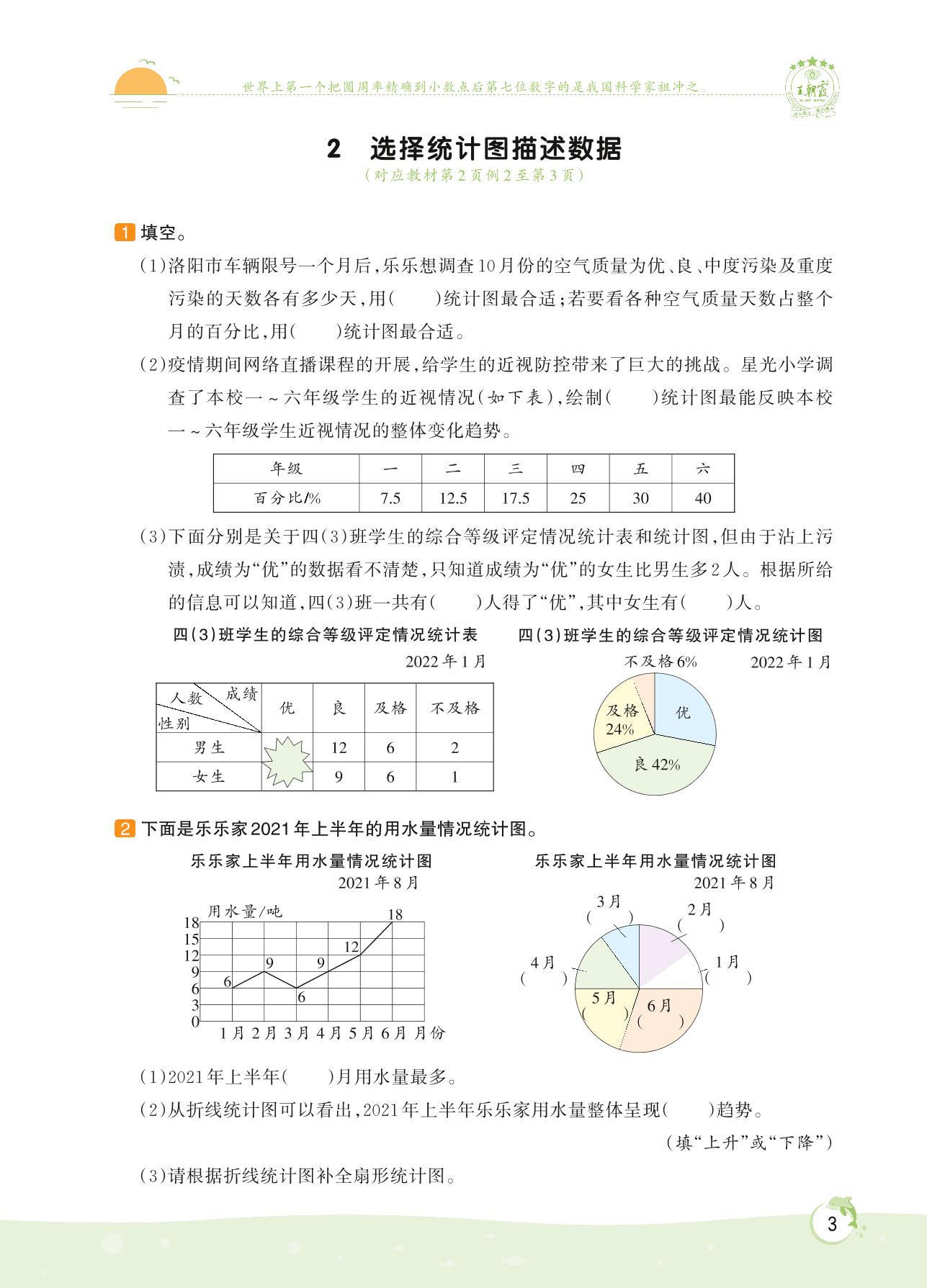 2022下册六年级数学苏教版 第一单元——2 选择统计图描述数据