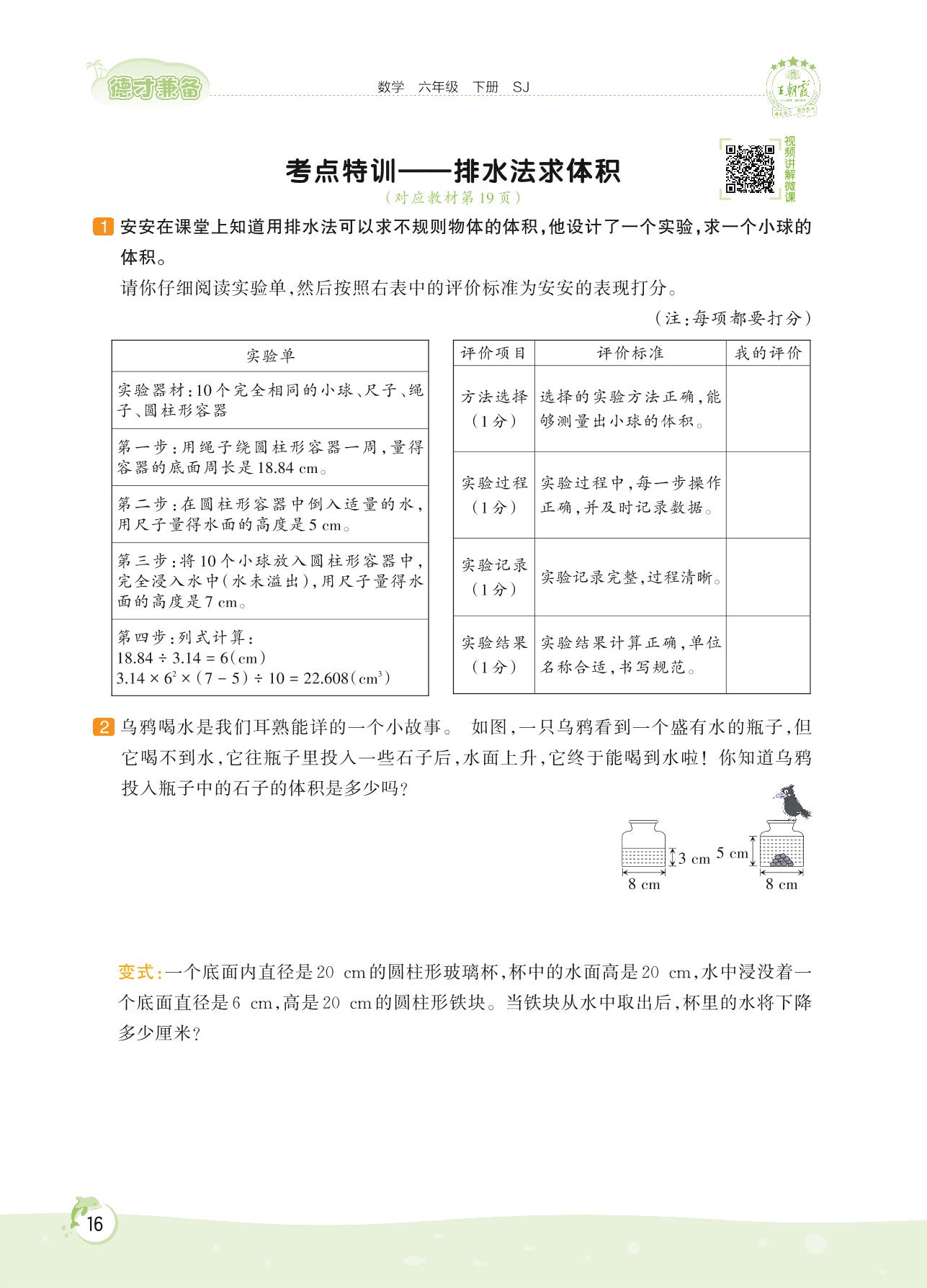 2022下册六年级数学苏教版 第二单元——考点特训 排水法求体积