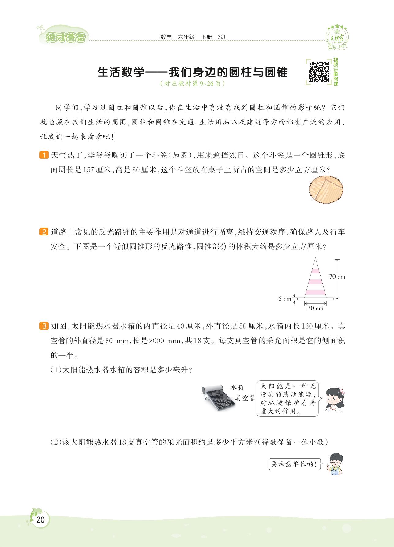 2022下册六年级数学苏教版 第二单元——生活数学 我们身边的圆柱与圆锥