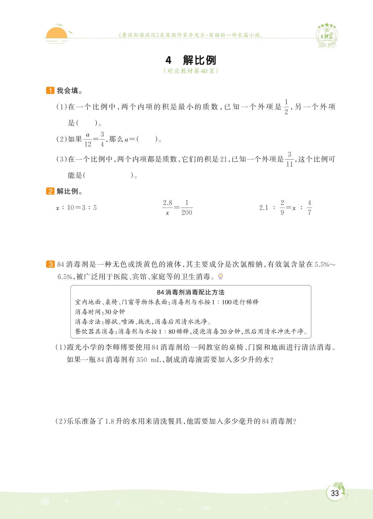 2022下册六年级数学苏教版 第四单元——4 解比例