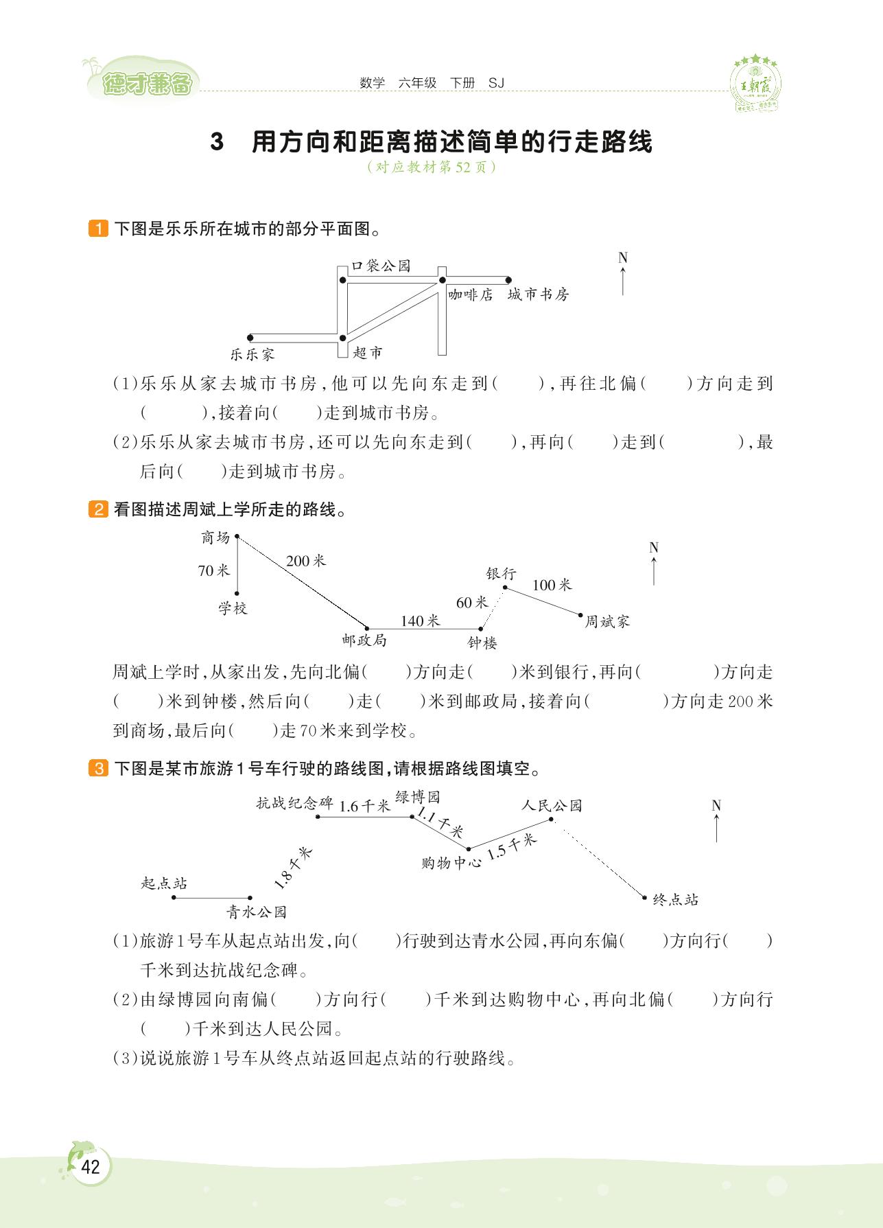 2022下册六年级数学苏教版 第五单元——3 用方向和距离描述简单的行走路线