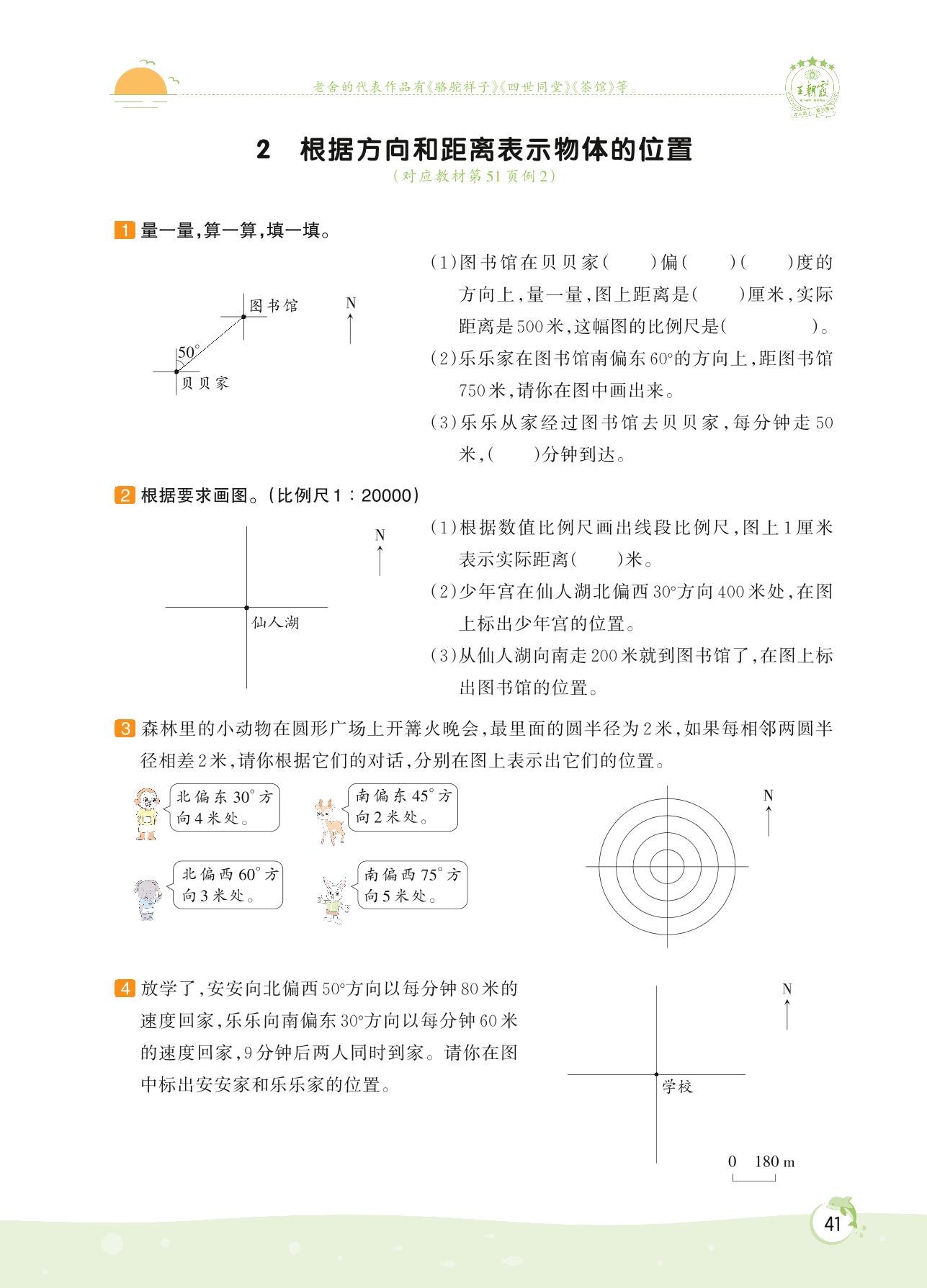 2022下册六年级数学苏教版 第五单元——2 根据方向和距离表示物体的位置