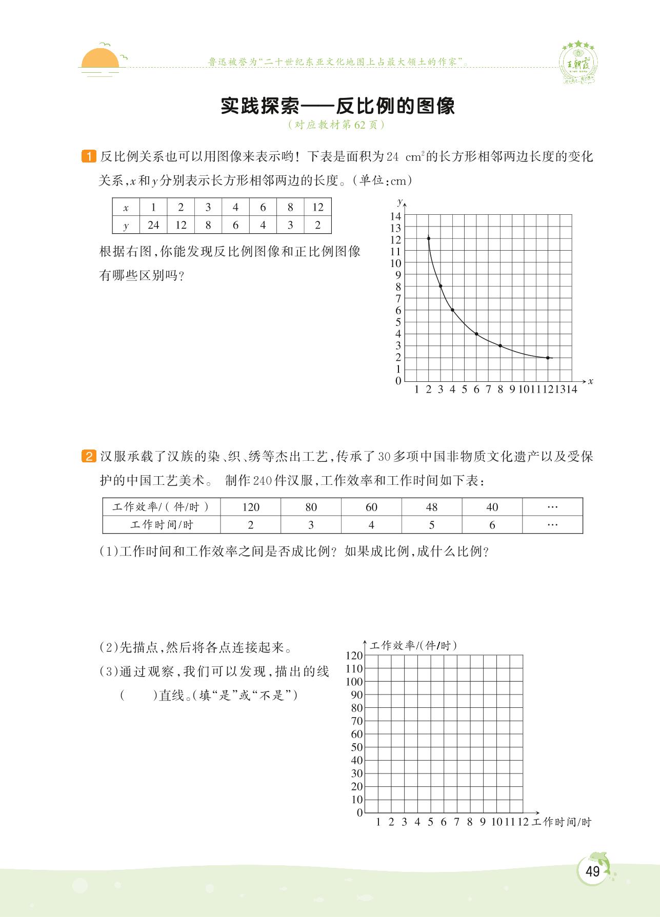 2022下册六年级数学苏教版 第六单元——实践探索 反比例的图像