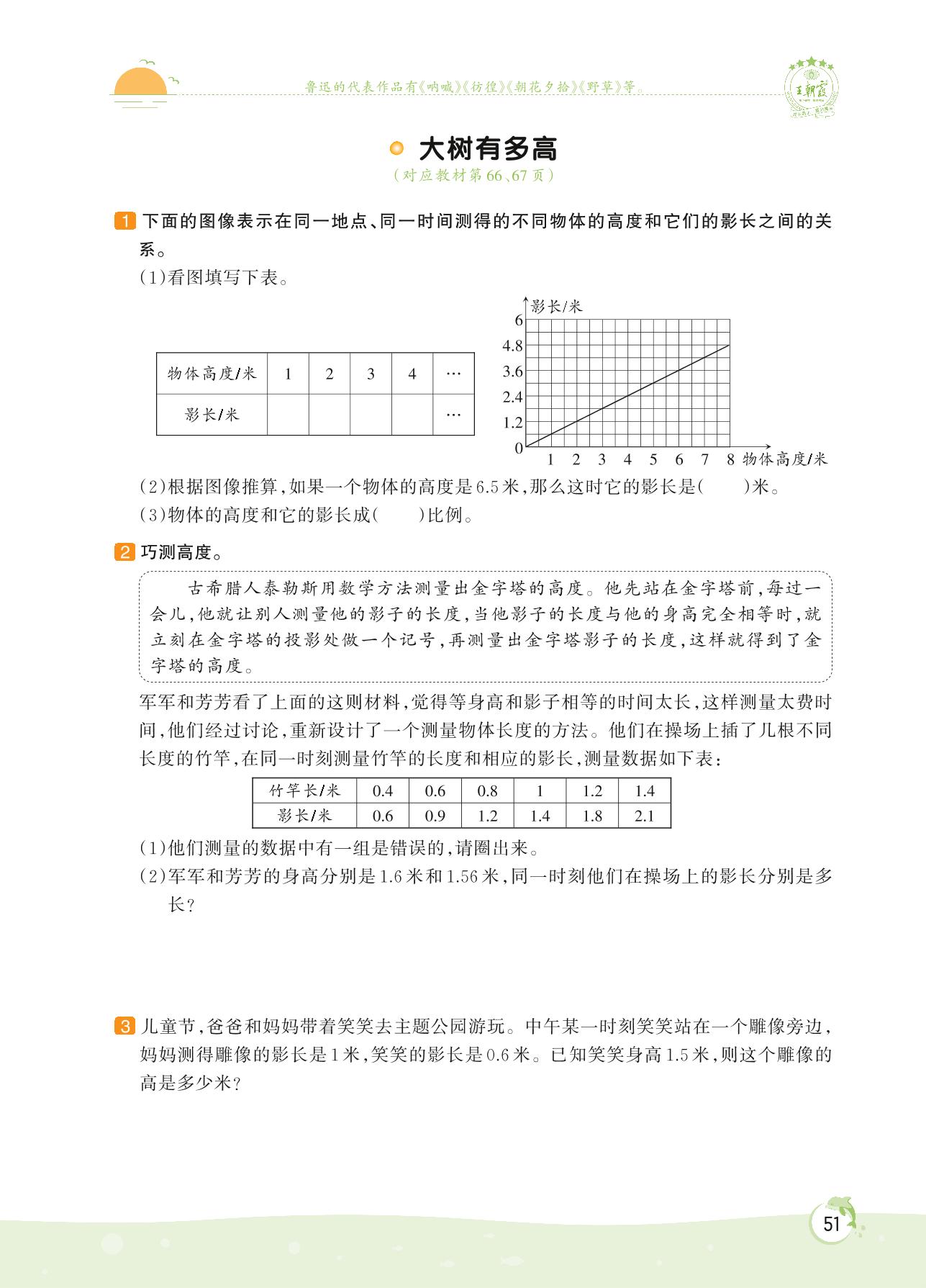 2022下册六年级数学苏教版 第六单元——大树有多高