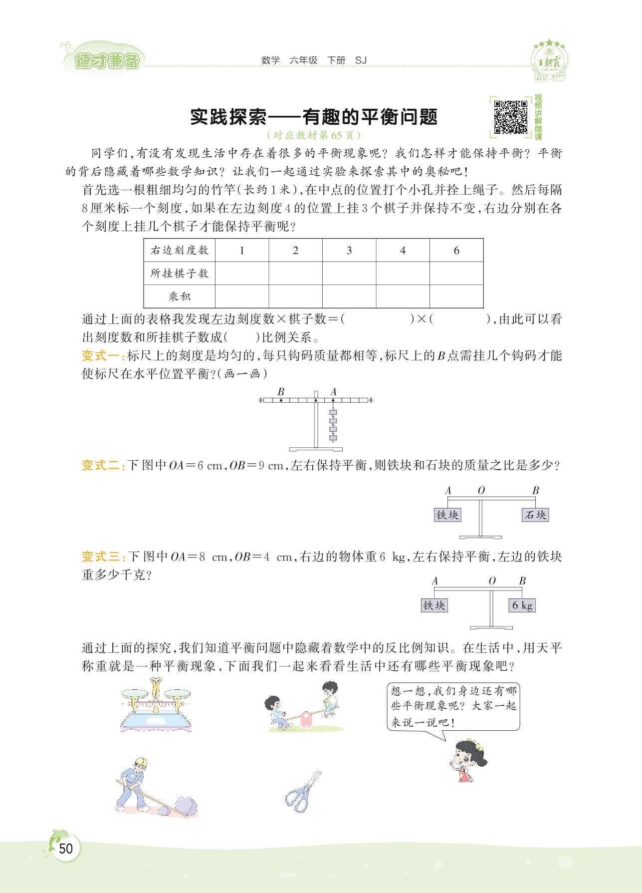 2022下册六年级数学苏教版 第六单元——实践探索 有趣的平衡问题