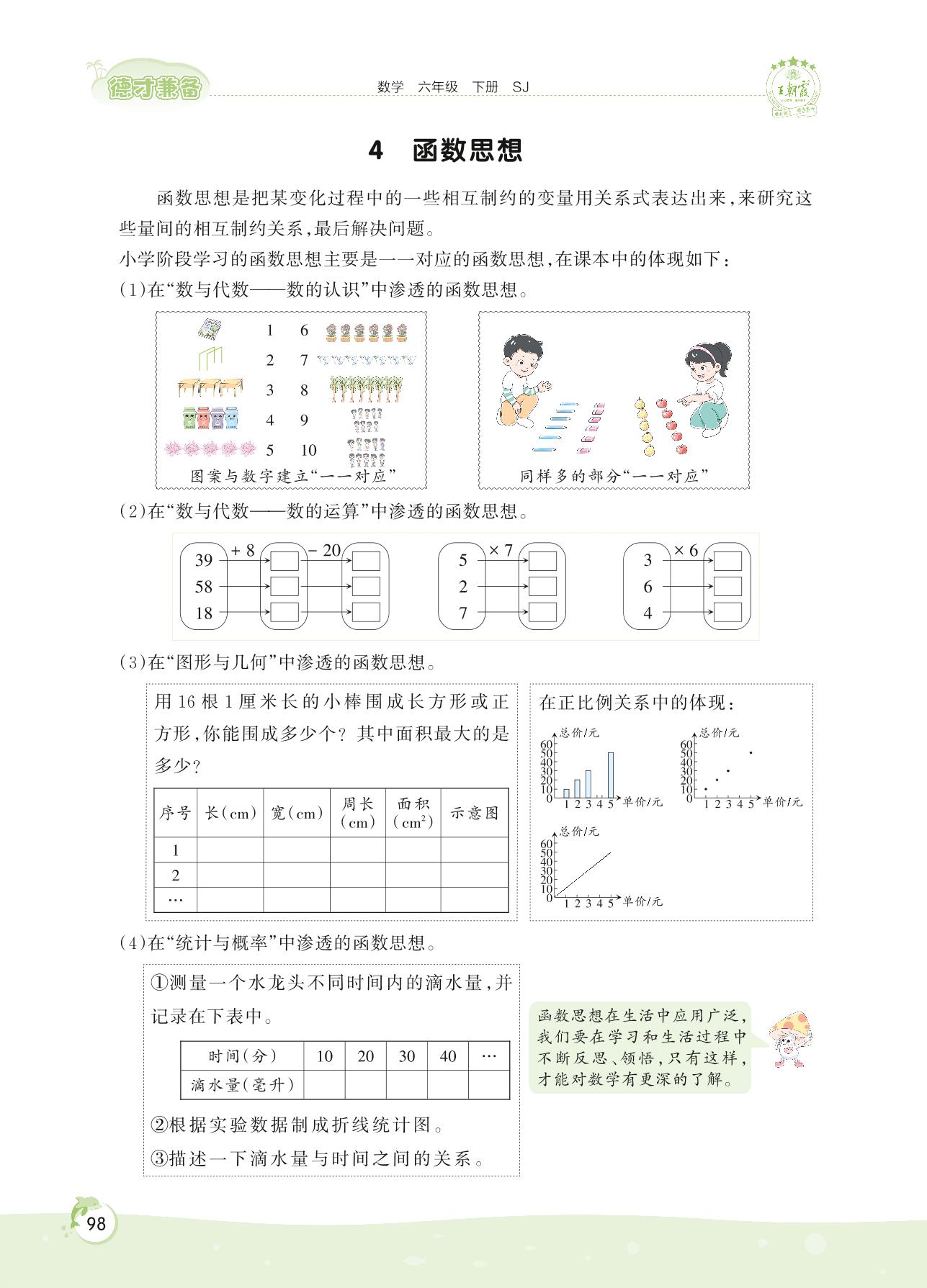 2022下册六年级数学苏教版 第七单元——4 函数思想