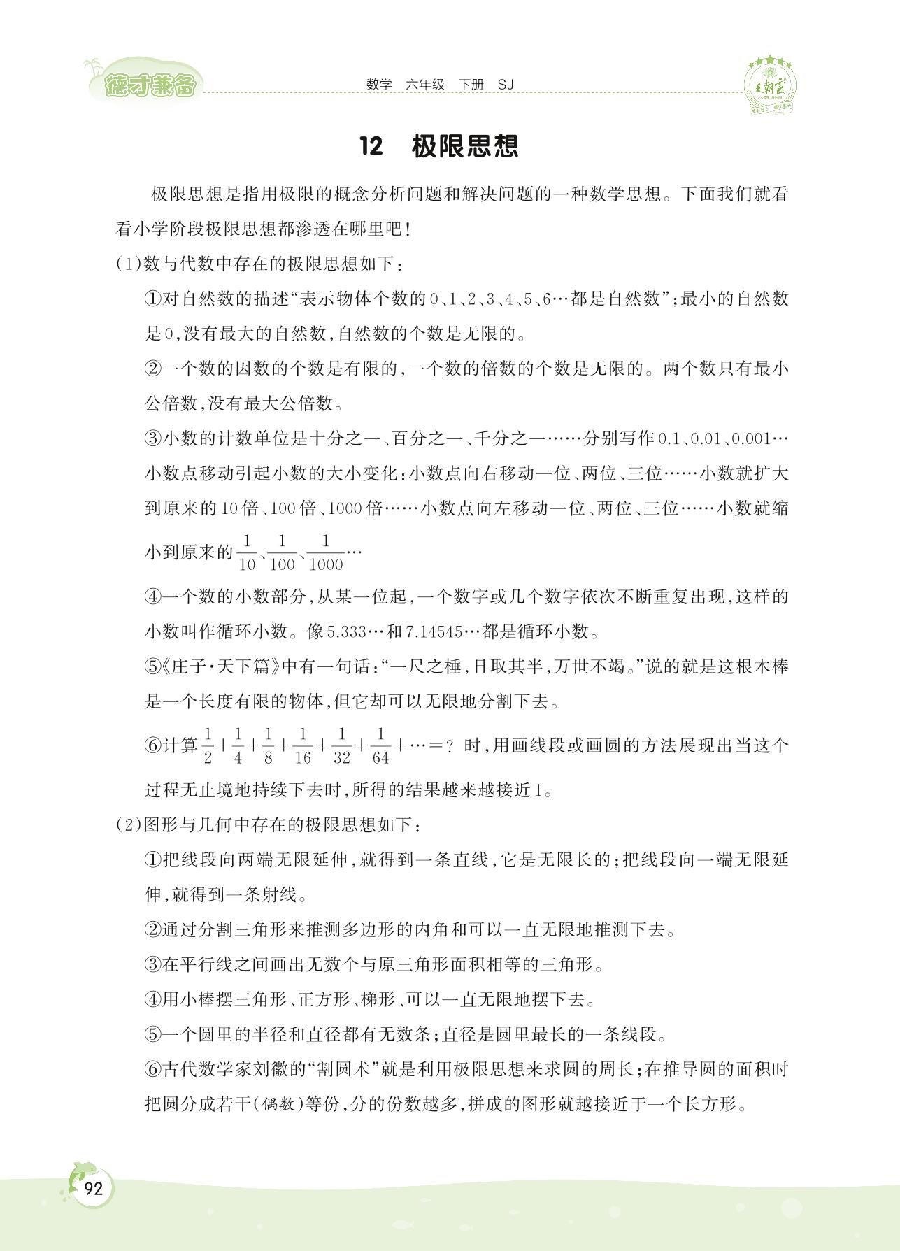 2022下册六年级数学苏教版 第七单元——12 极限思想