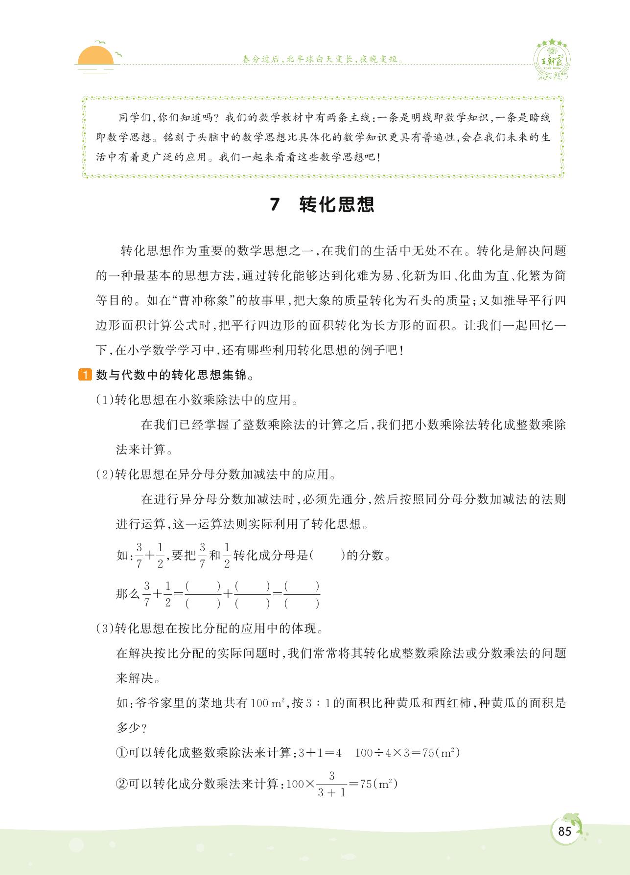 2022下册六年级数学苏教版 第七单元——7 转化思想