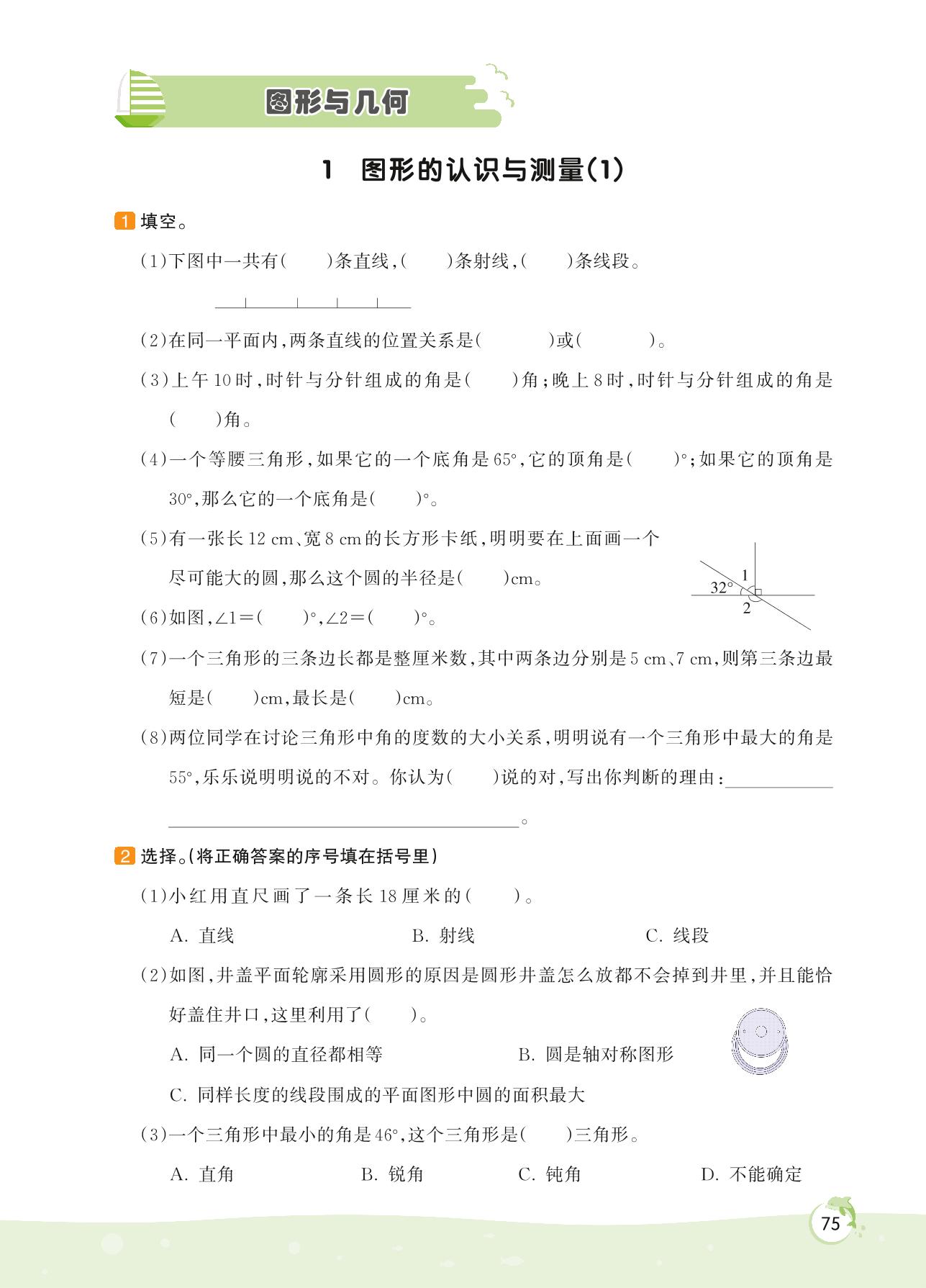 2022下册六年级数学苏教版 第七单元——1 图形的认识与测量(1)