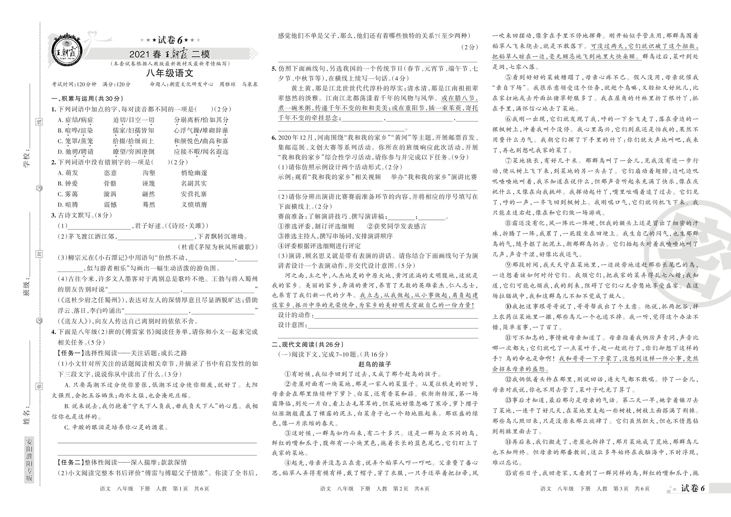 王朝霞期末模拟卷八年级下册语文(人教版)_R210801234021【6】