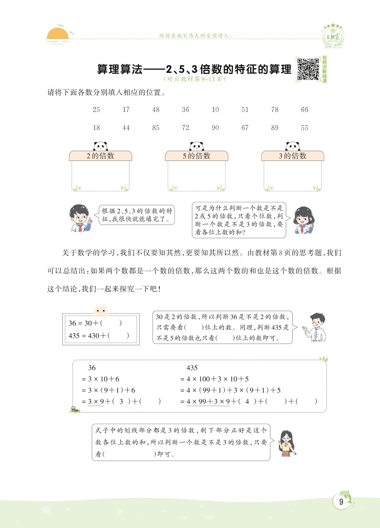 2022下册五年级数学人教版 第二单元——算理算法 2、5、3倍数的特征的算理