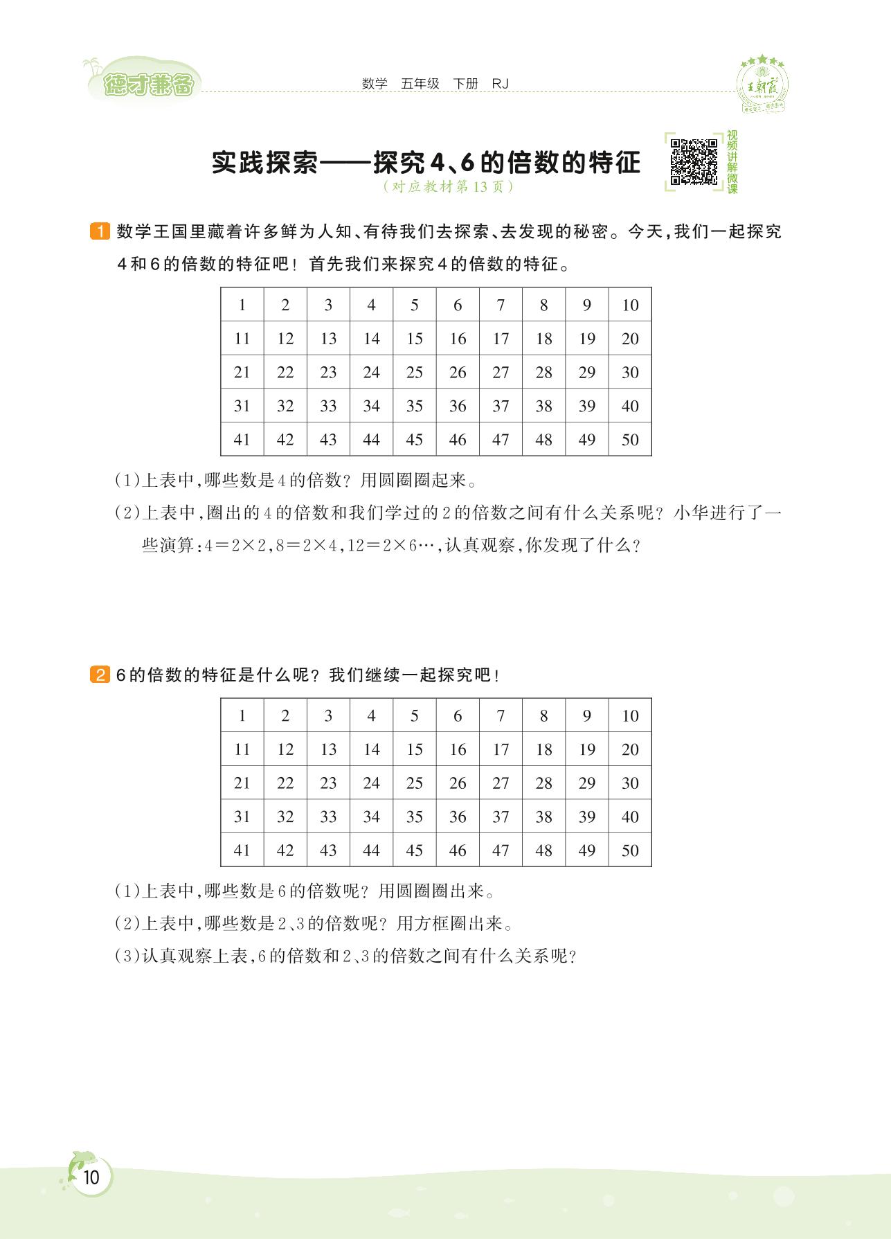 2022下册五年级数学人教版 第二单元——实践探索 探究4、6的倍数的特征