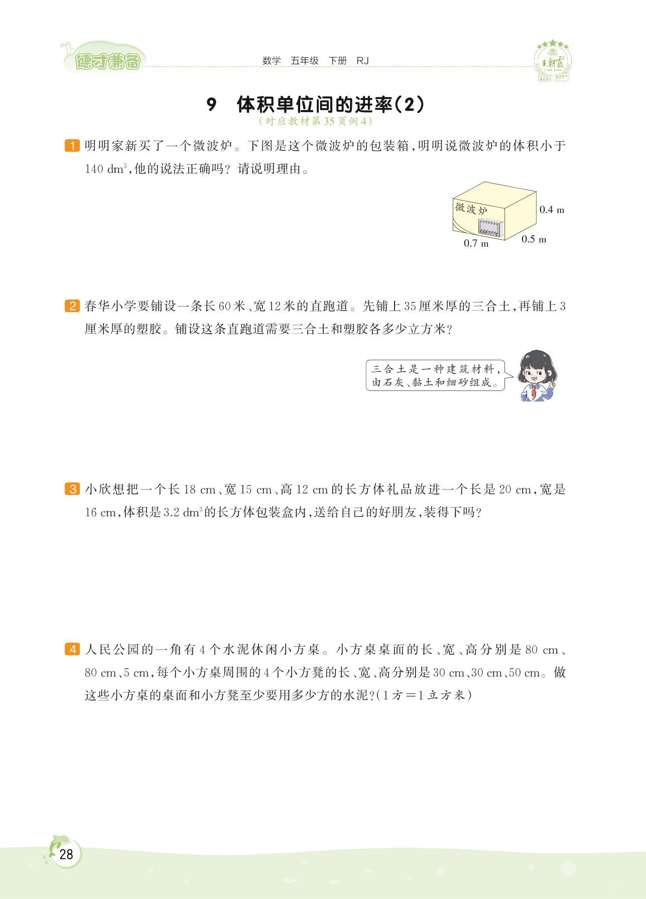 2022下册五年级数学人教版 第三单元——9 体积单位间的进率(2)