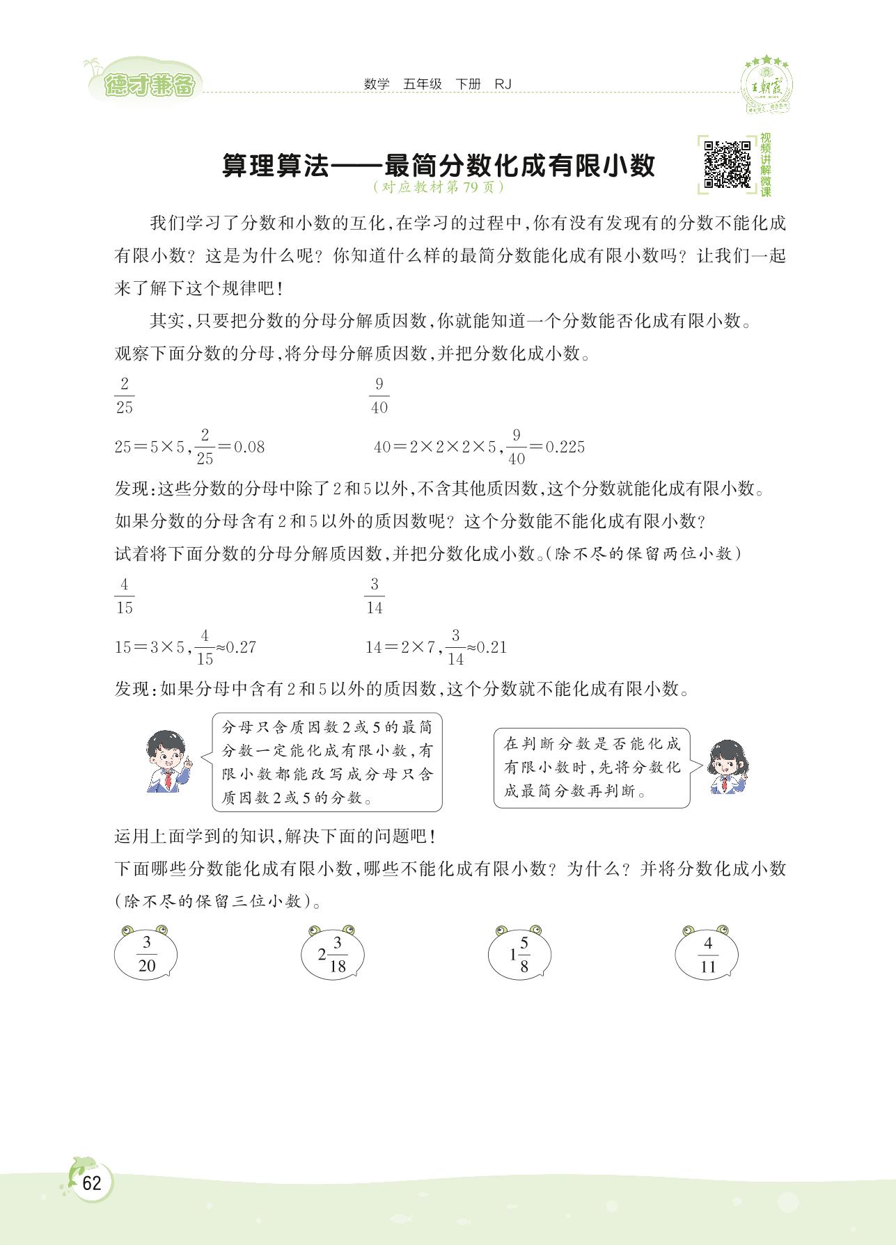 2022下册五年级数学人教版 第四单元——算理算法 最简分数化成有限小数