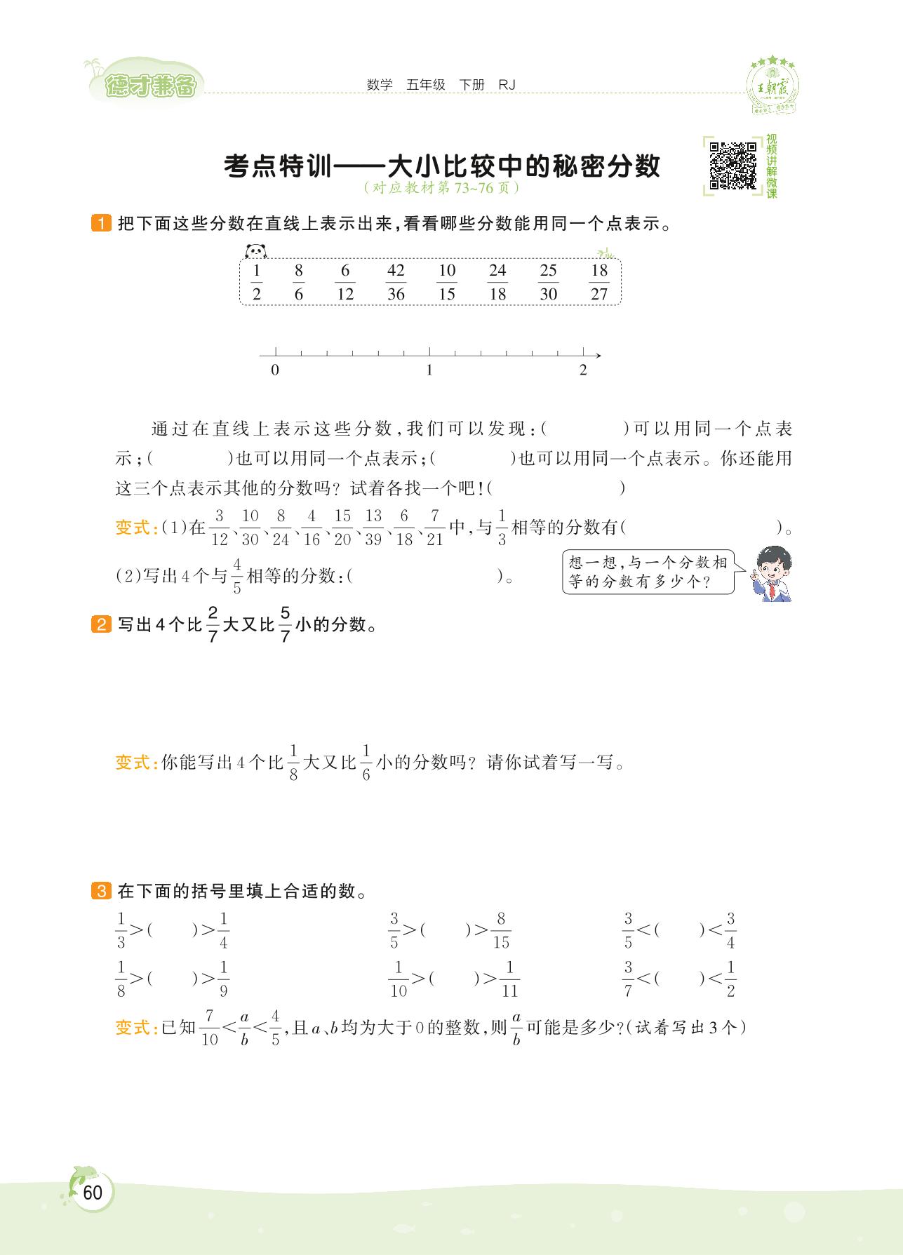 2022下册五年级数学人教版 第四单元——考点特训 大小比较中的秘密分数