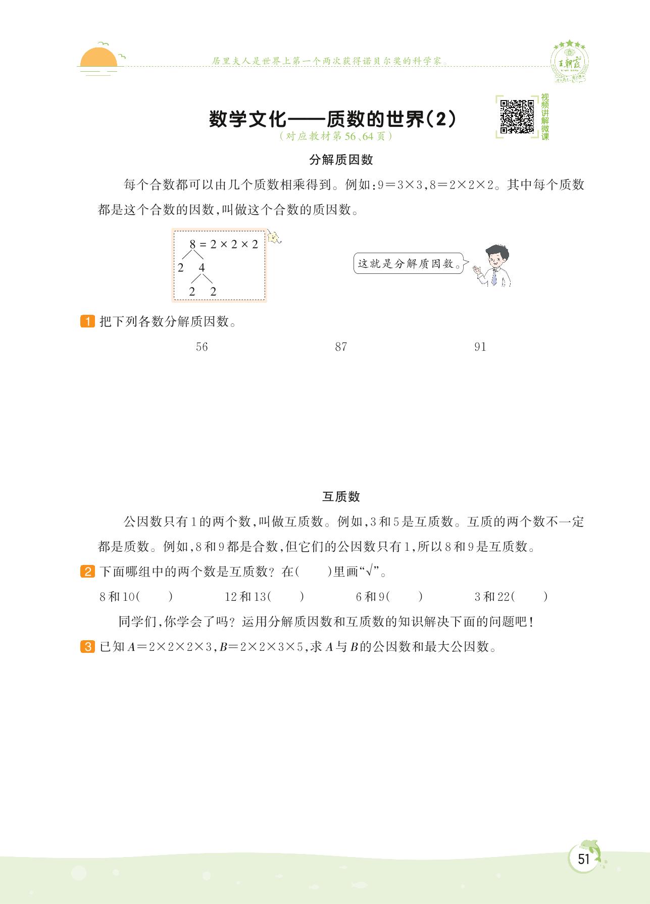 2022下册五年级数学人教版 第四单元——数学文化 质数的世界(2)