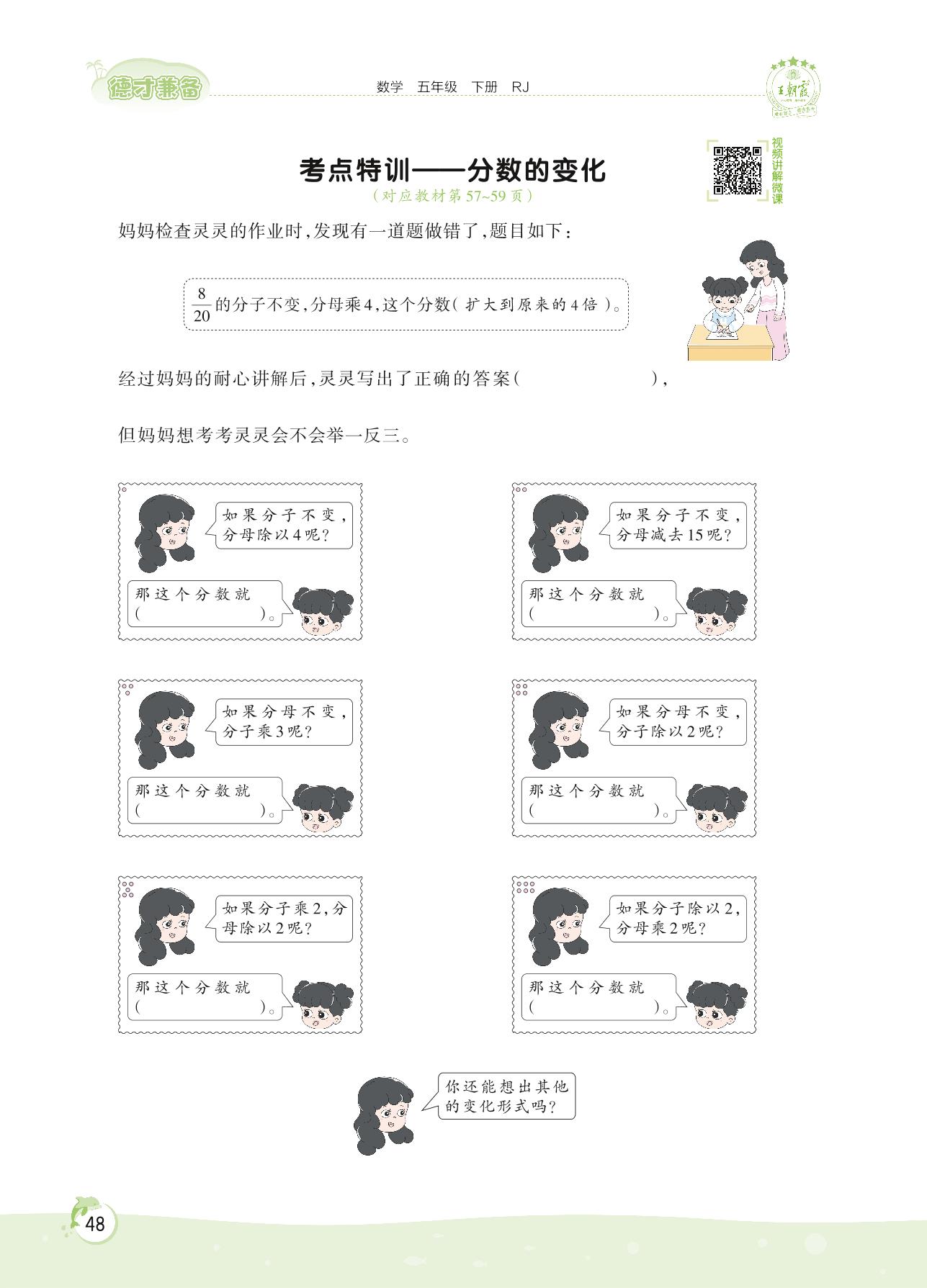 2022下册五年级数学人教版 第四单元——考点特训 分数的变化