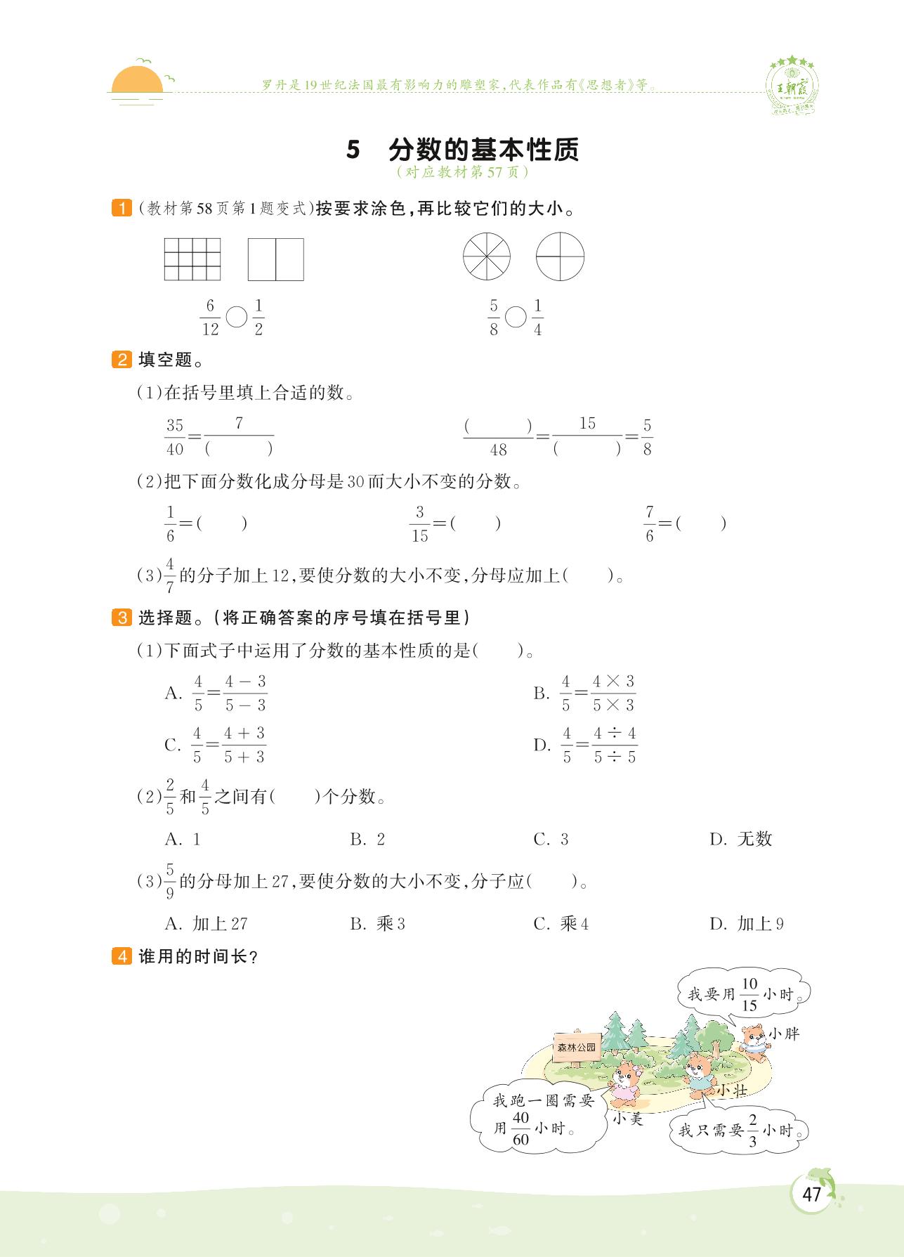 2022下册五年级数学人教版 第四单元——5 分数的基本性质