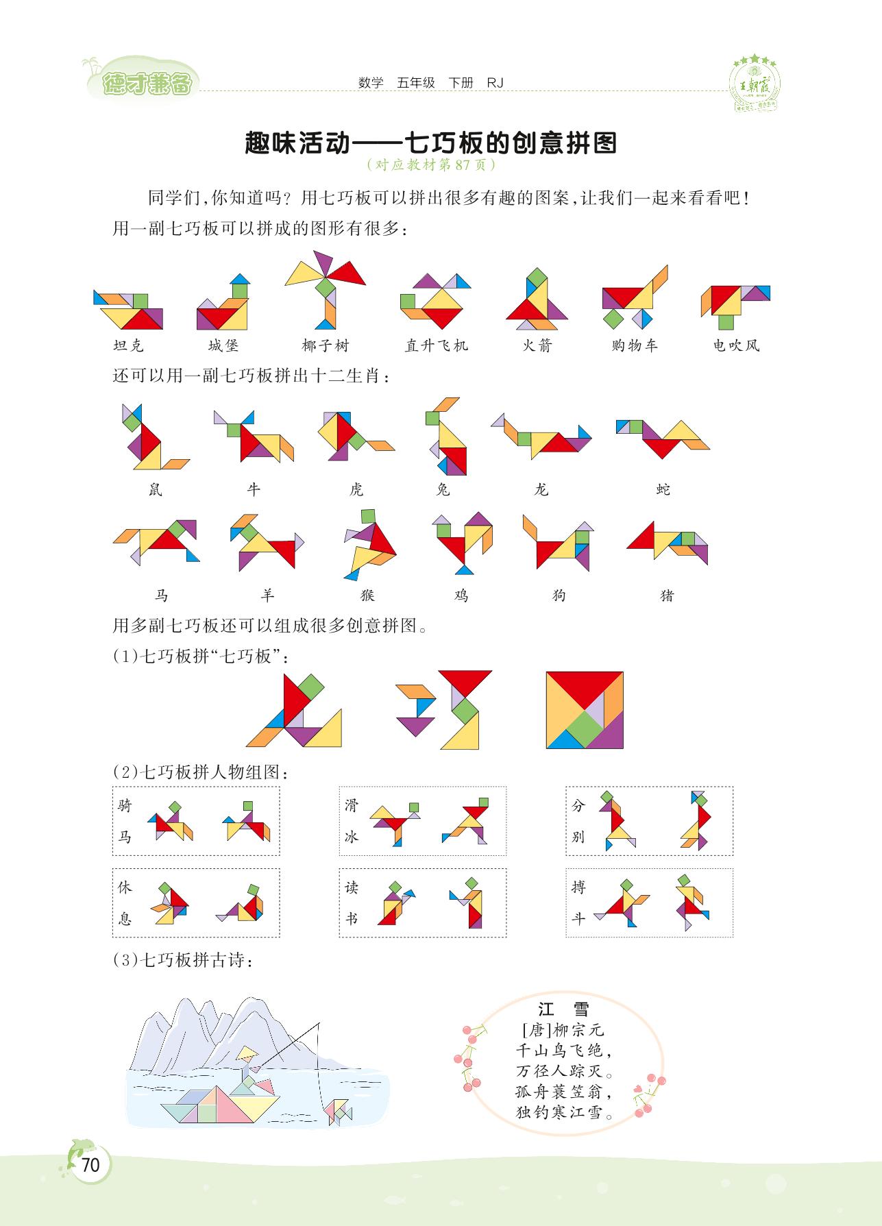 2022下册五年级数学人教版 第五单元——趣味活动 七巧板的创意拼图