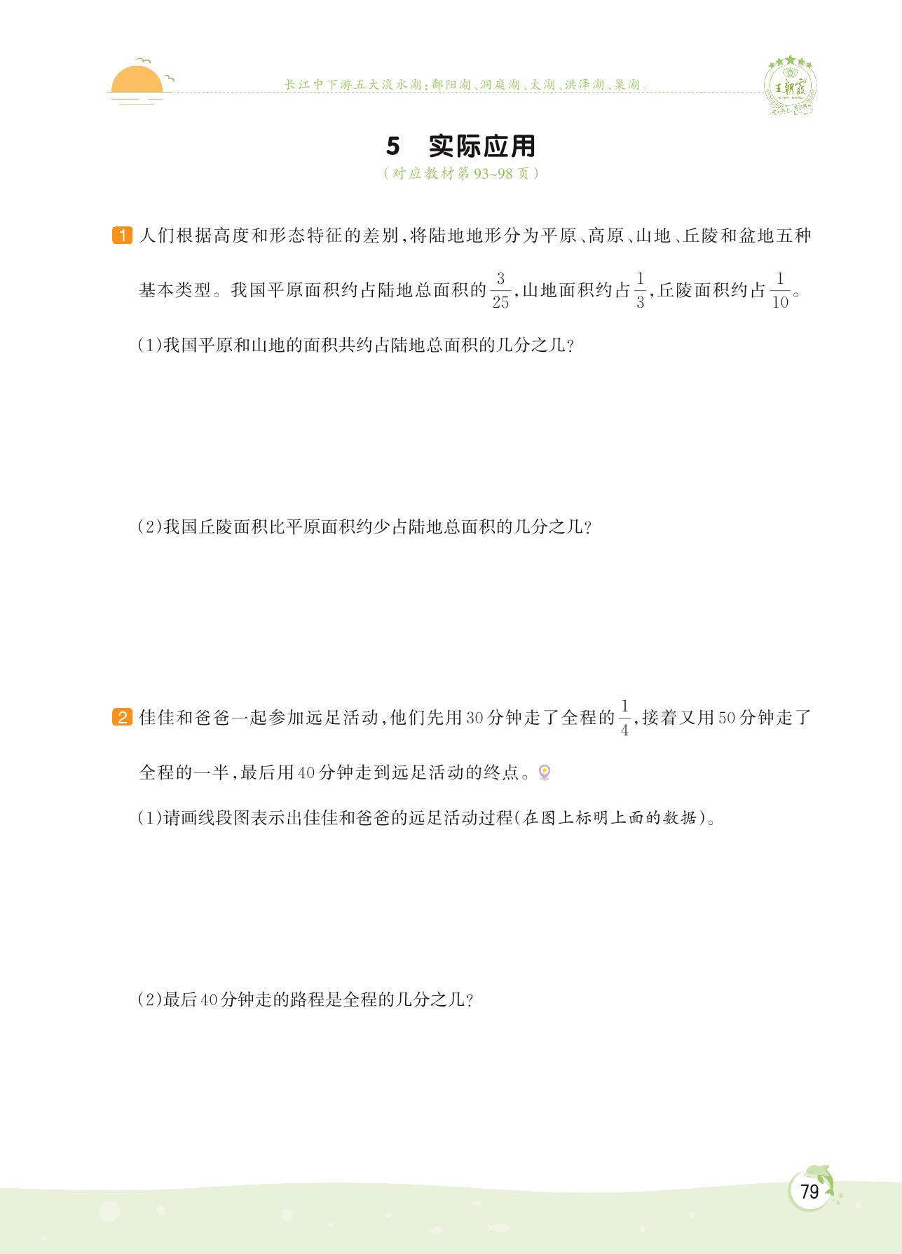 2022下册五年级数学人教版 第六单元——5 实际应用