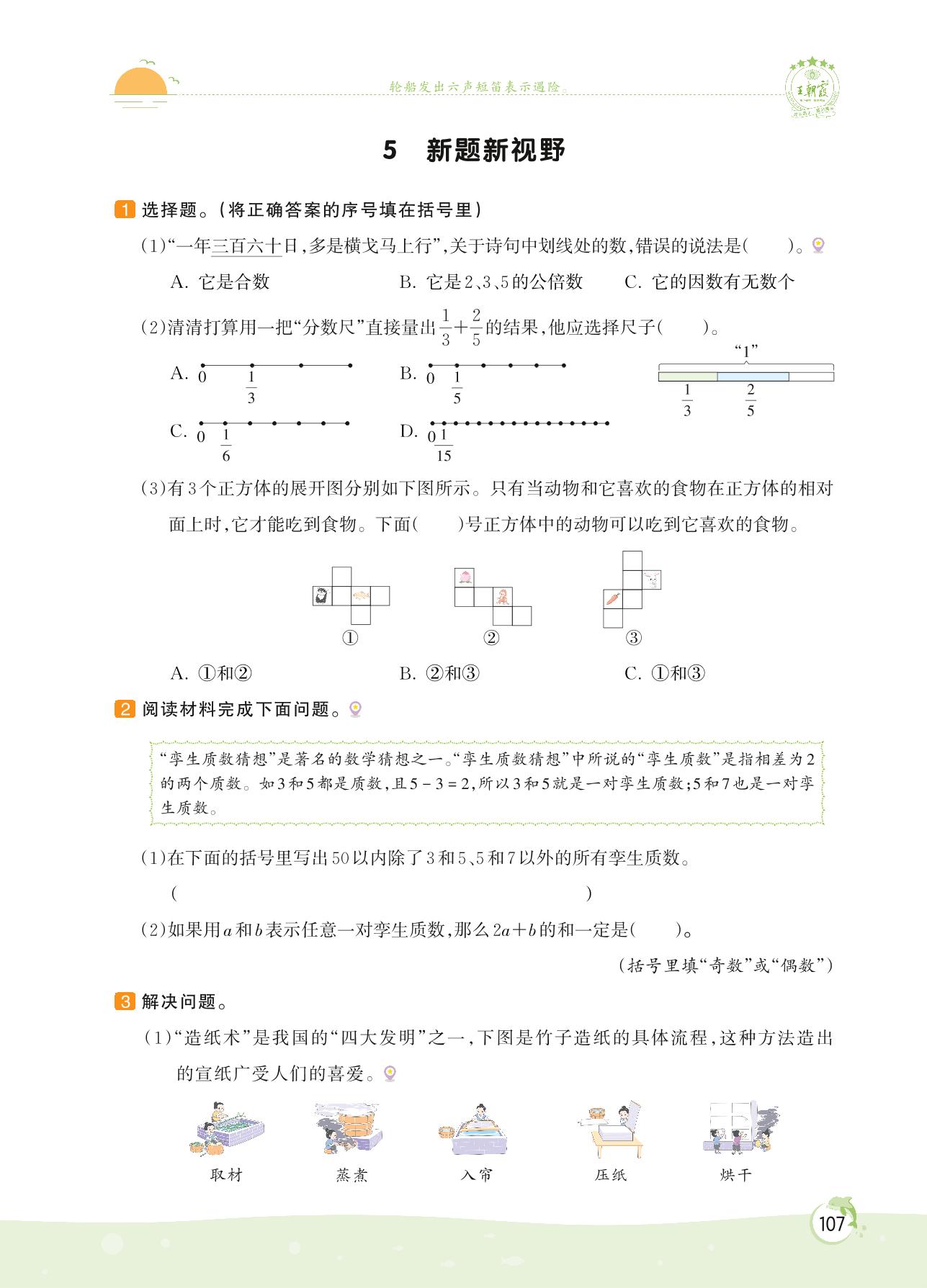 2022下册五年级数学人教版 第九单元——5 新题新视野