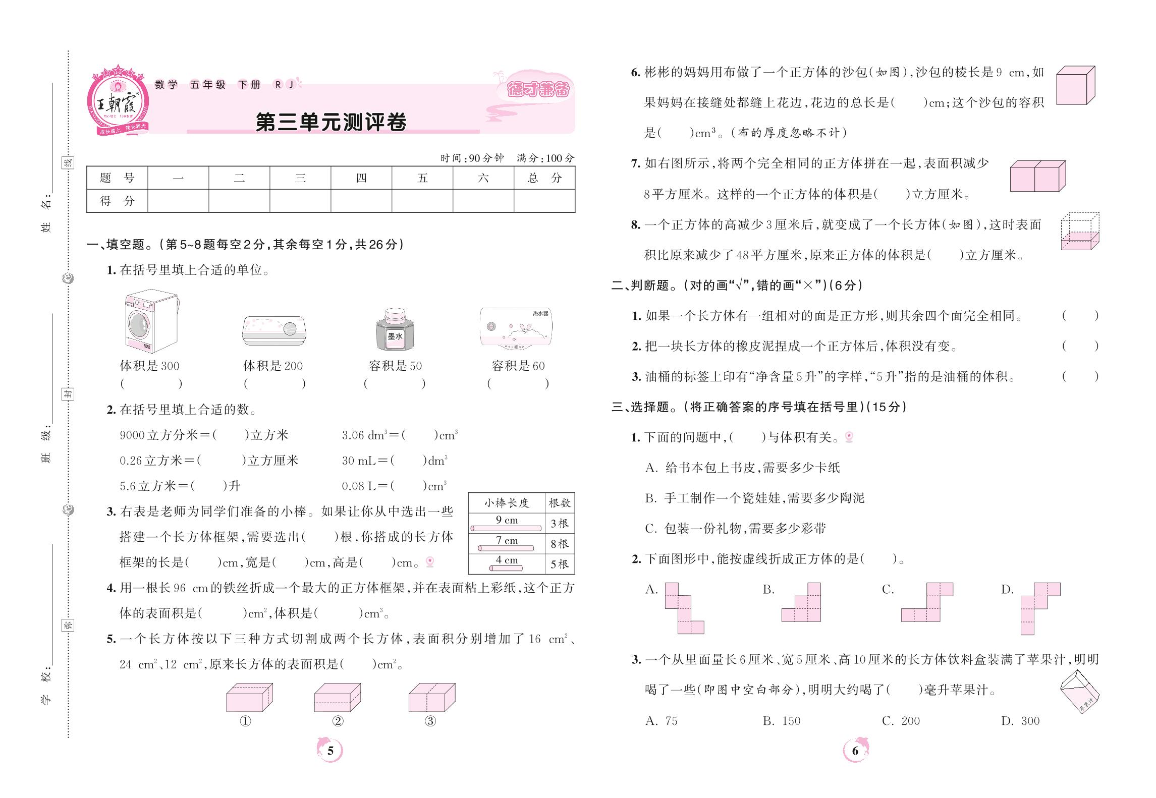 五年级数学人教版下册单元卷