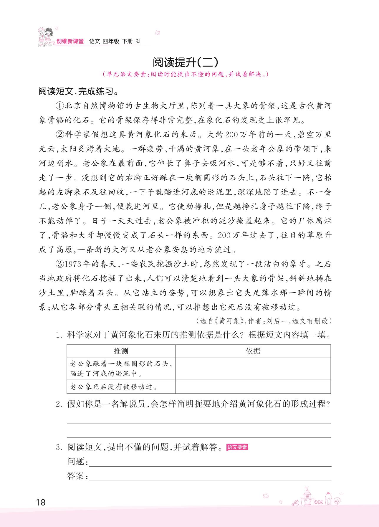 2022下册四年级语文人教版 第二单元——阅读提升(二)