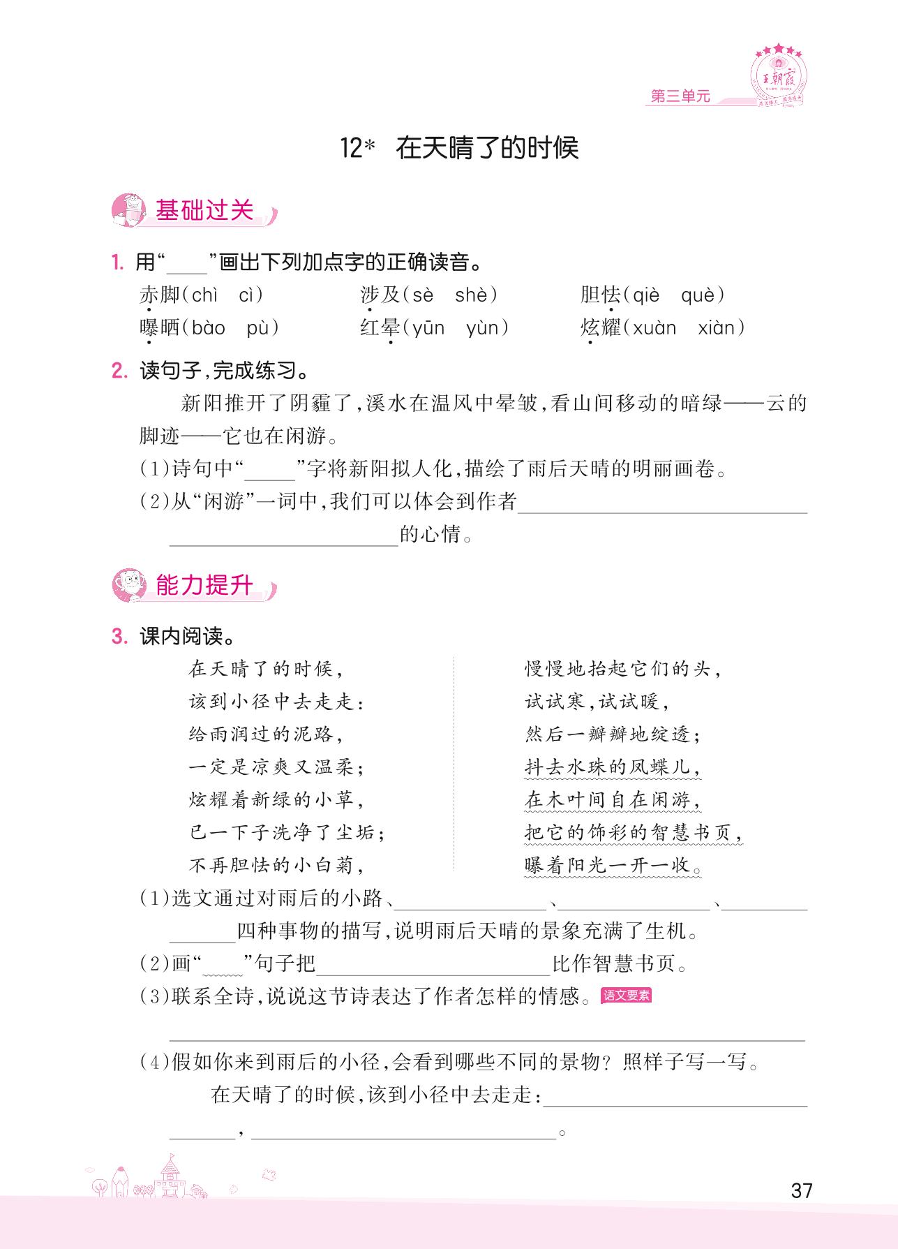 2022下册四年级语文人教版 第三单元——12 在天晴了的时候